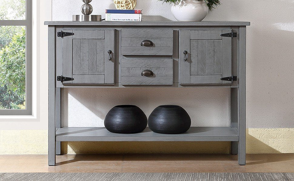 48'' Solid Wood Sideboard Console Table With 2 Drawers And Cabinets And Bottom Shelf, Retro Style Storage Dining Buffet Server Cabinet For Living Room Kitchen Dining Room Antique Gray Antique Gray Pine