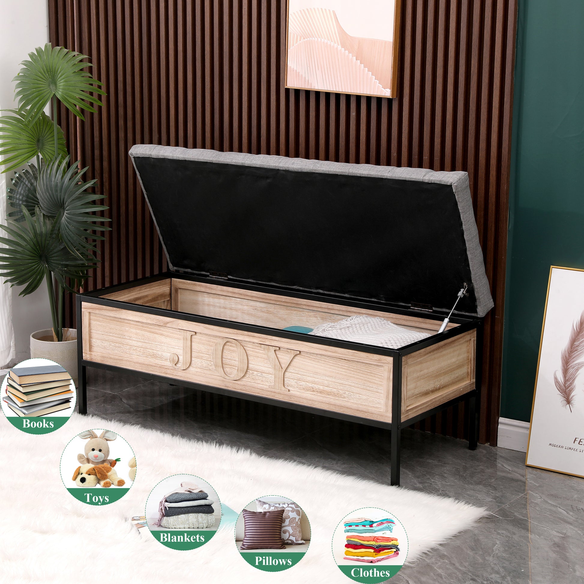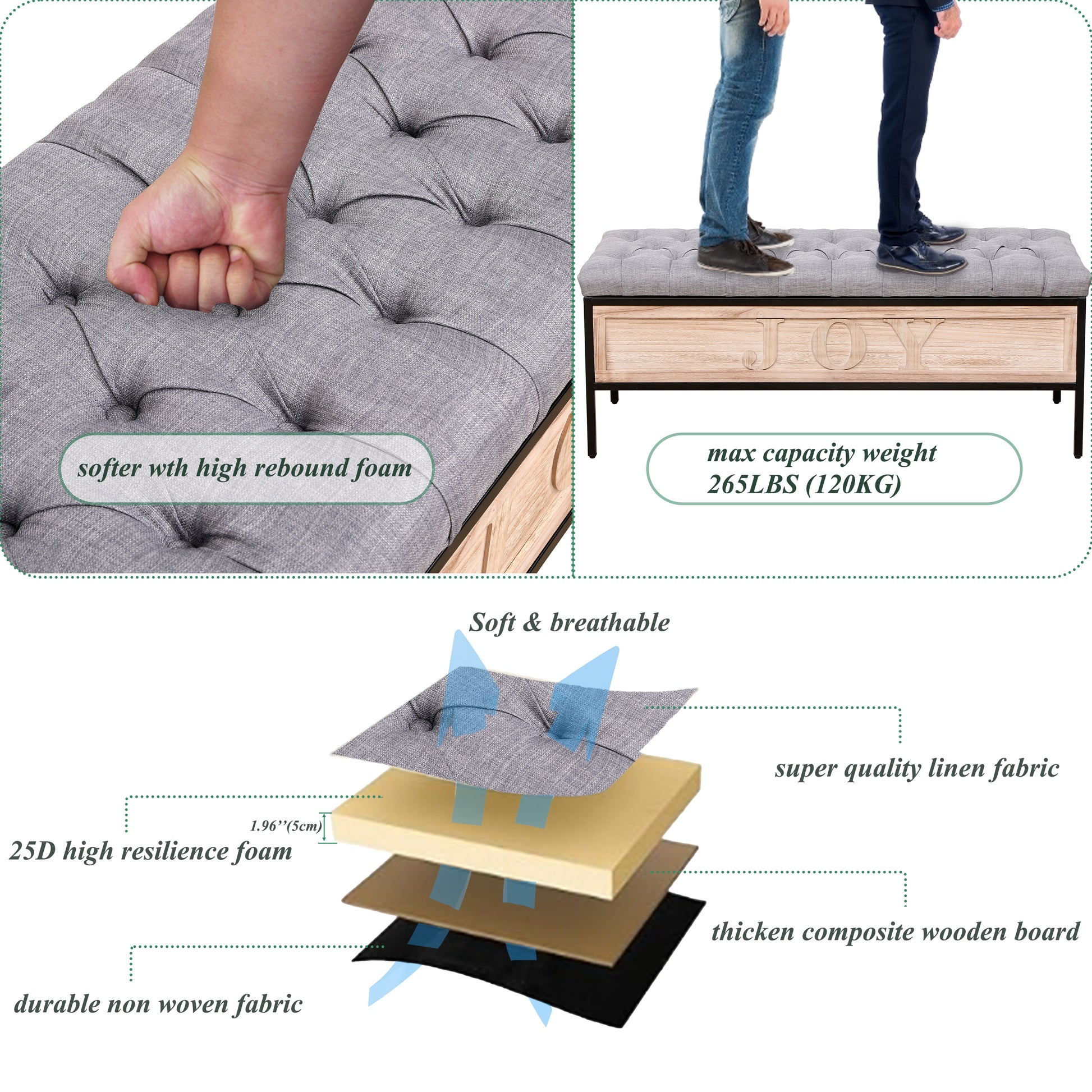 48'' Storage Bench Linen Upholstered End Of Bed Storage Benches With Button Tufted Wooden Joy Ottoman For Bedroom, Living Room Gray Gray Primary Living Space Modern Foam Linen