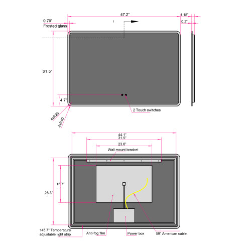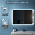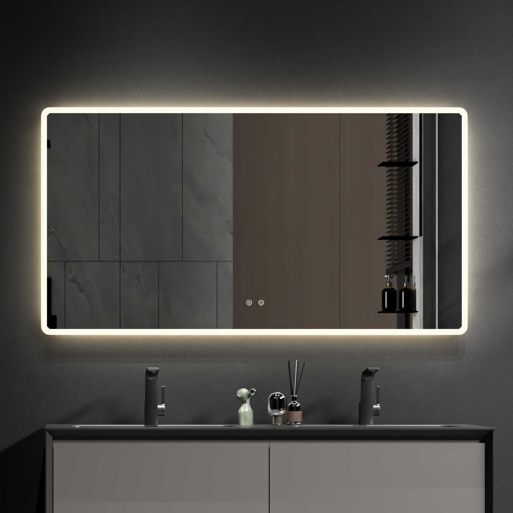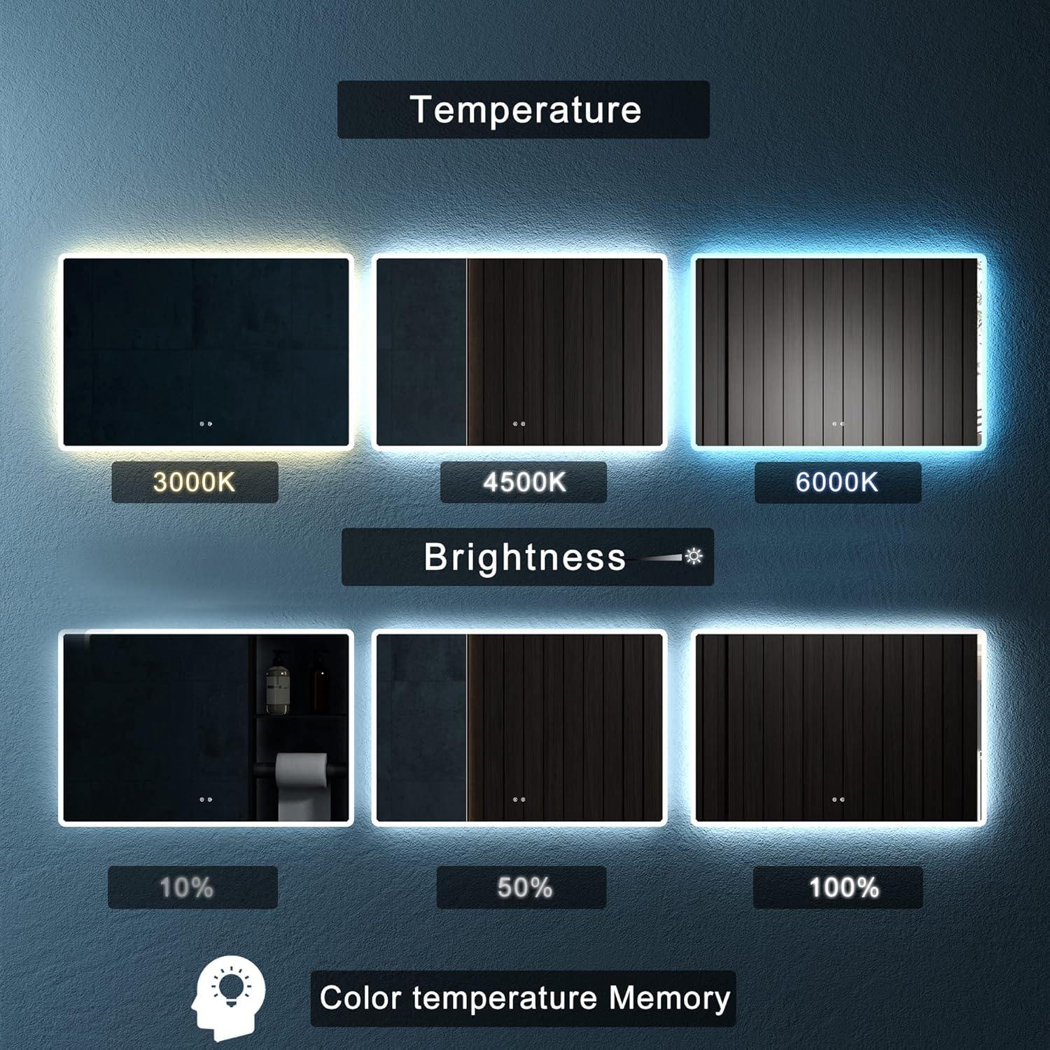 48" W X 32" H Modern Wall Mounted Led Backlit Anti Fog Rounded Rectangular Bathroom Mirror With Us Standard Plug, Temperature Adjustable And Memory Function Touch Switch White Glass