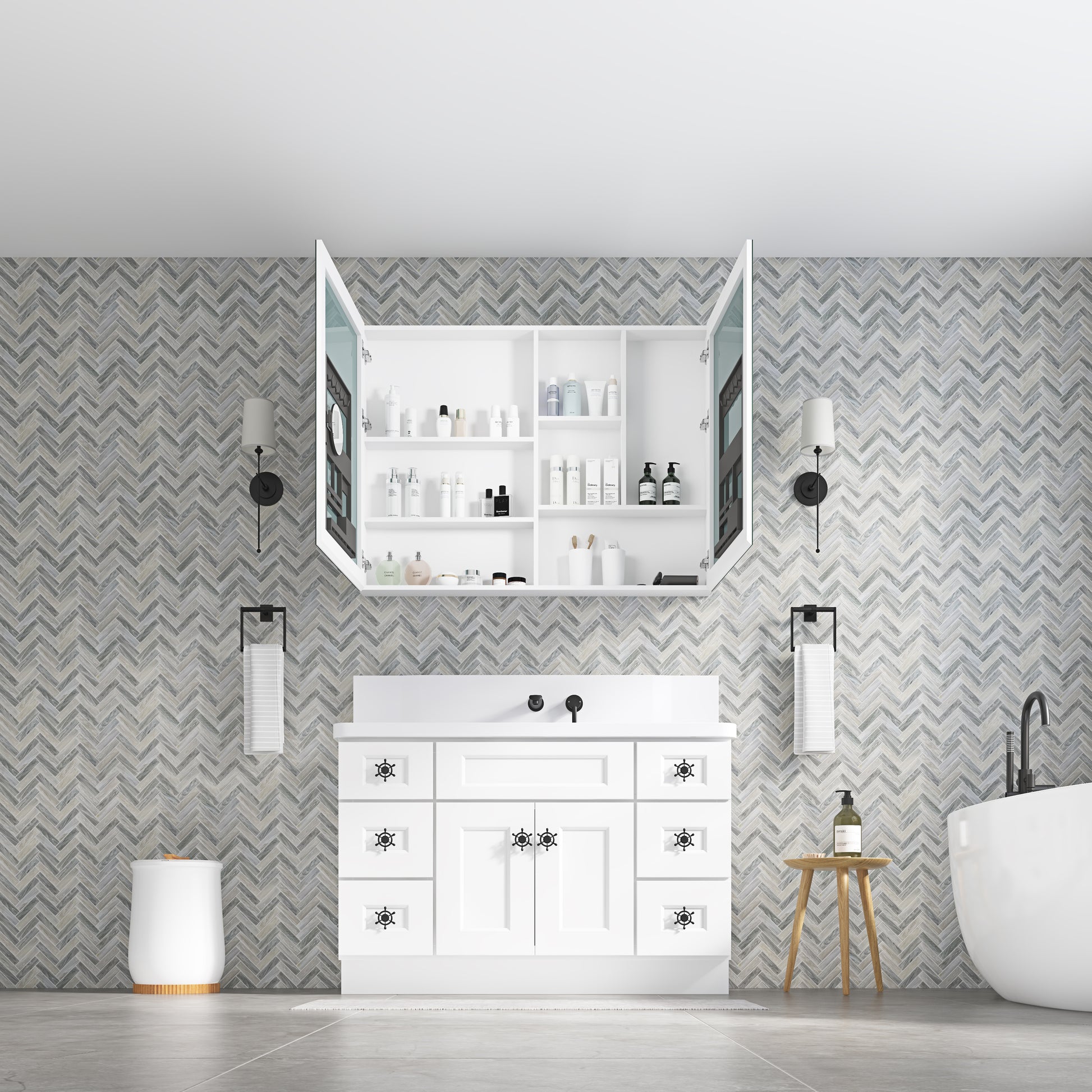 48'' W X 36'' H Bathroom Mirror Medicine Cabinet Wooden Door Medicine Cabinets For Bathroom, Wall Mounted Recessed Or Surface, Bathroom Mirror With Storage White Engineered Wood