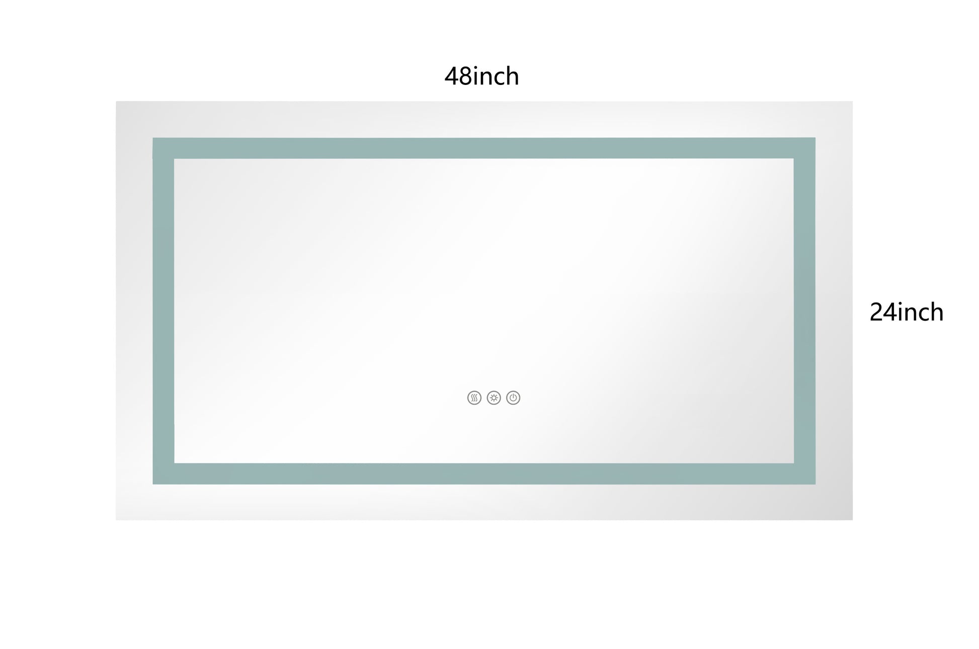 48 X 24 Inch Led Mirror Bathroom Vanity Mirrors With Lights, Wall Mounted Anti Fog Memory Large Dimmable Front Light Makeup Mirror White Aluminum