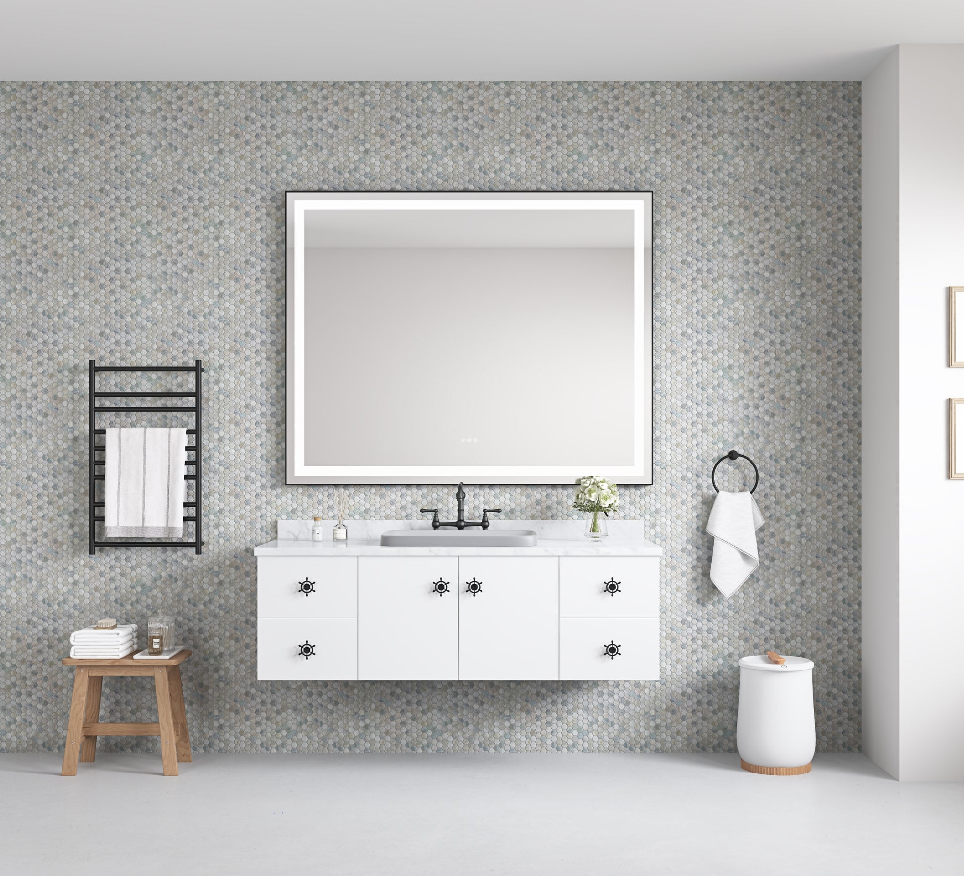 48X 48Inch Led Mirror Bathroom Vanity Mirror With Back Light, Wall Mount Anti Fog Memory Large Adjustable Vanity Mirror Gun Ash Aluminium