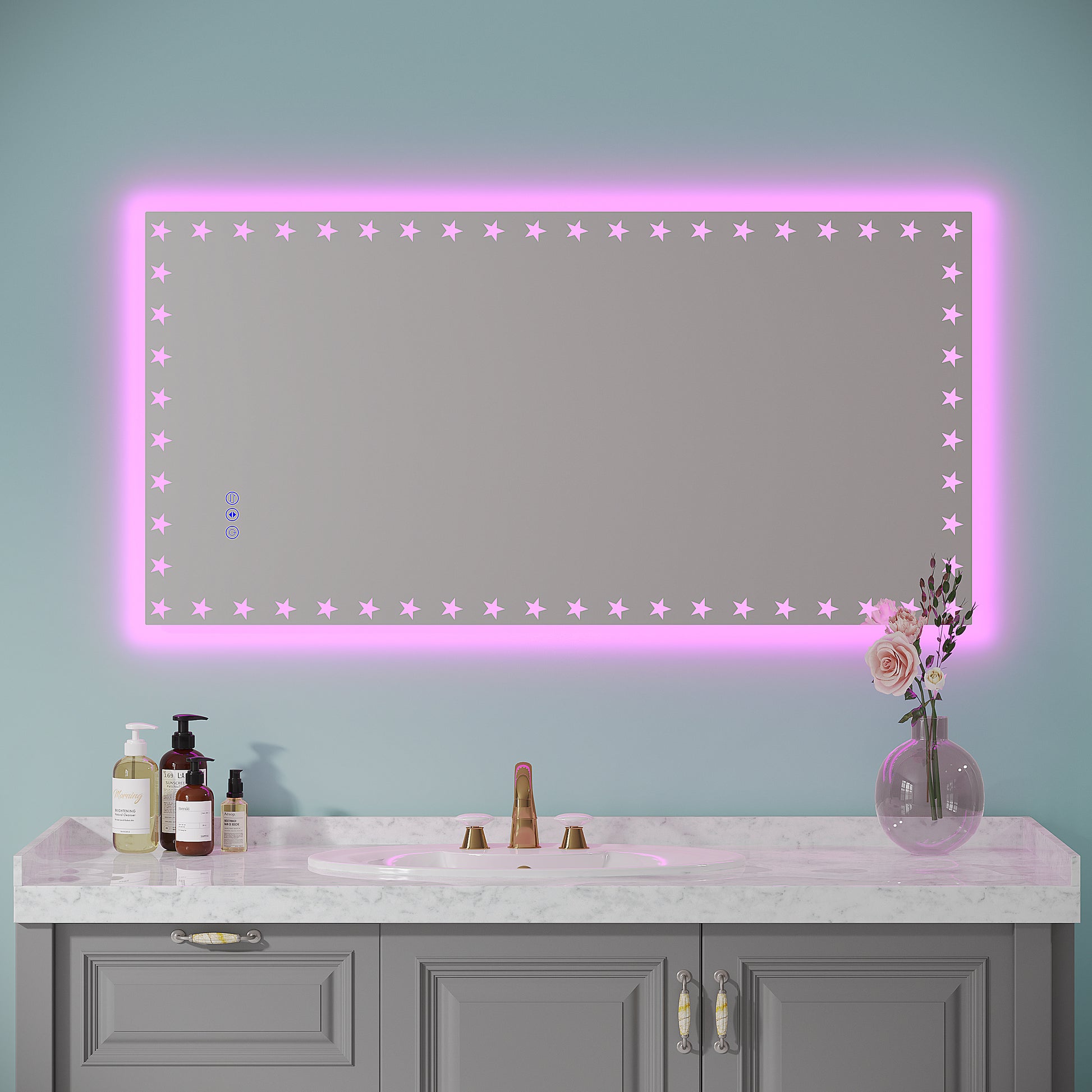 48X24 Inch Led Bathroom Mirror With Lights Backlit Rgb Color Changing Lighted Mirror For Bathroom Wall Dimmable Anti Fog Memory Rectangular Vanity Mirror Rgb Multicolor Backlit Front Lighted White Aluminium