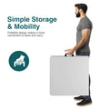 4Ft Folding Table Outdoor Indoor Heavy Duty Portable Table With Carrying Handle For Camping Picnic Party White Metal & Wood