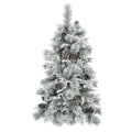 4Ft Pre Lit Spruce Snow Flocked Christmas Tree With Pine Cones, Artificial Xmas Tree With 170 Branch Tips,Mixed Pe & Pvc Branches, 120 Multi Color Led Lights, 11 Flashing Modes, Holiday D Cor White Green Polyethylene,Pvc
