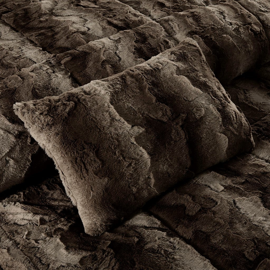 4Pc Faux Fur Comforter Set King Dark Brown Polyester