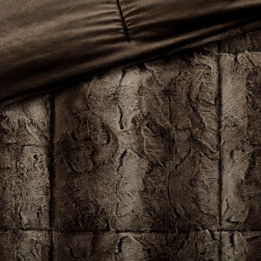 4Pc Faux Fur Comforter Set Queen Dark Brown Polyester