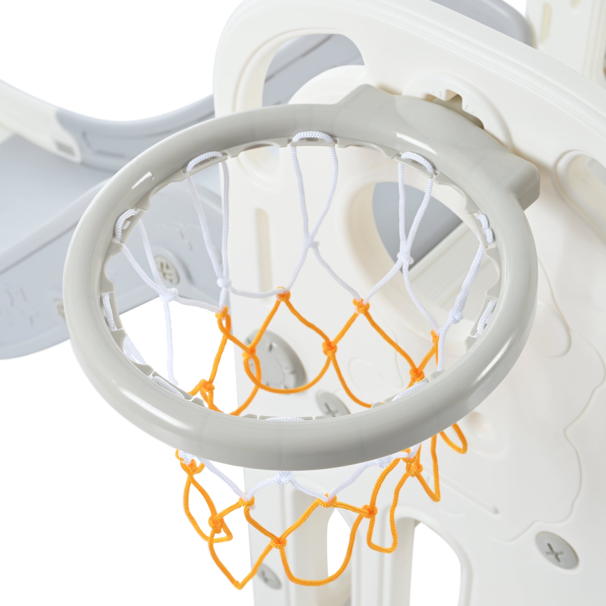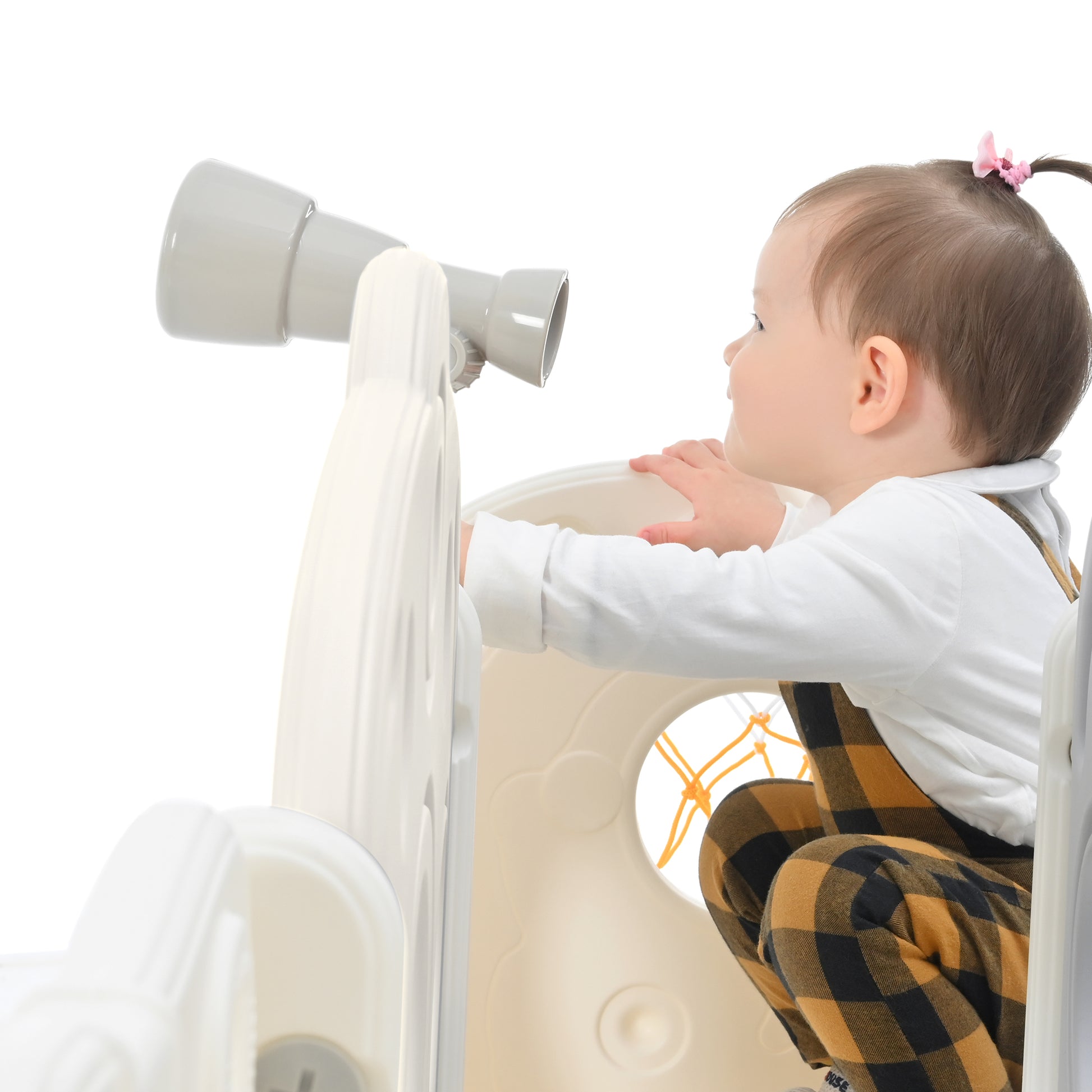 5 1 Toddler Slide Set, Freestanding Space Set With Slide, Kids Slide Playset Structure, Telescope And Basketball Hoop, Toy Storage Space, Kids Climbers Playground Grey White 50 99 Lbs Cute 1 To 2 Years Hdpe Indoor & Outdoor Use