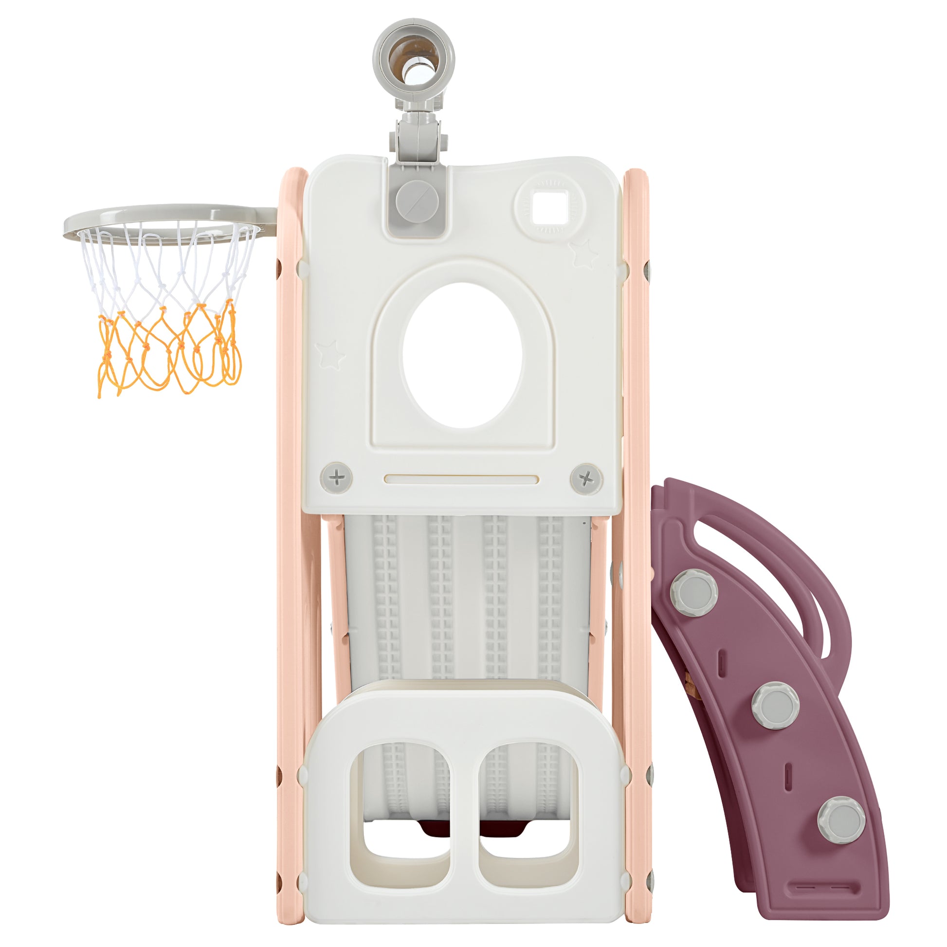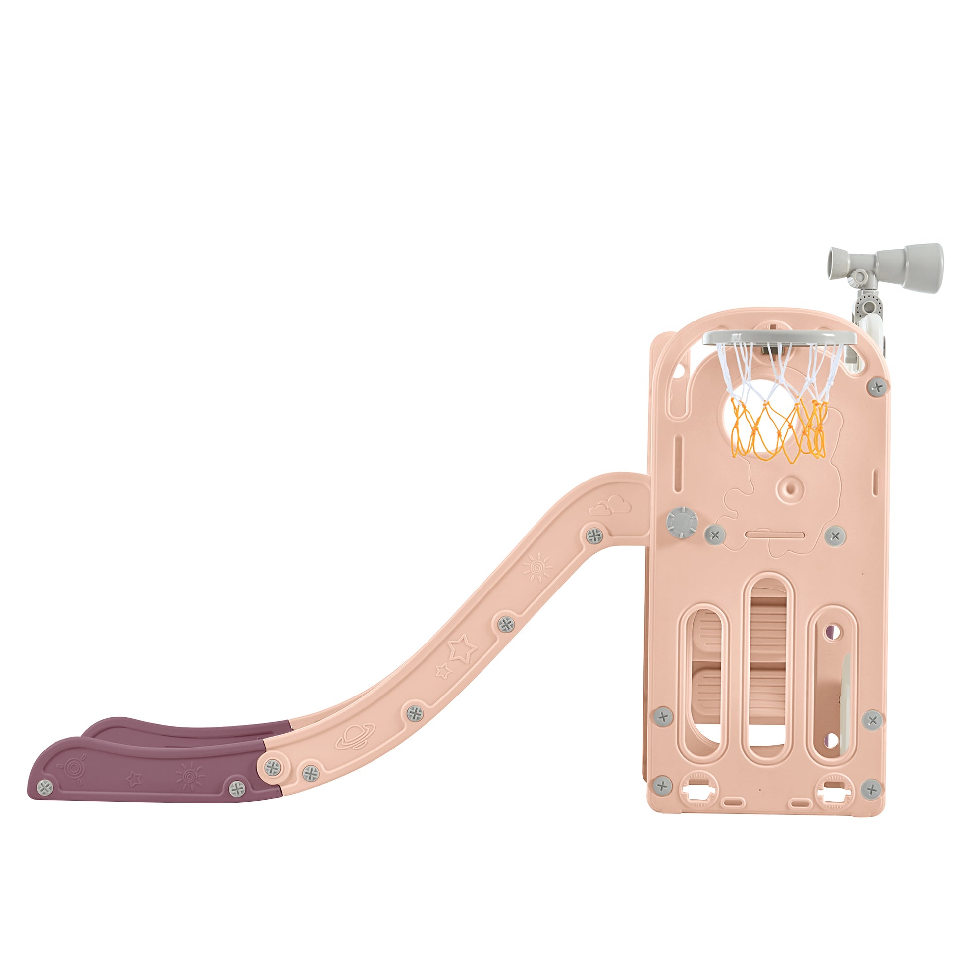 5 1 Toddler Slide Set, Freestanding Space Set With Slide, Kids Slide Playset Structure, Telescope And Basketball Hoop, Toy Storage Space, Kids Climbers Playground Purple 50 99 Lbs Cute 1 To 2 Years Hdpe Indoor & Outdoor Use