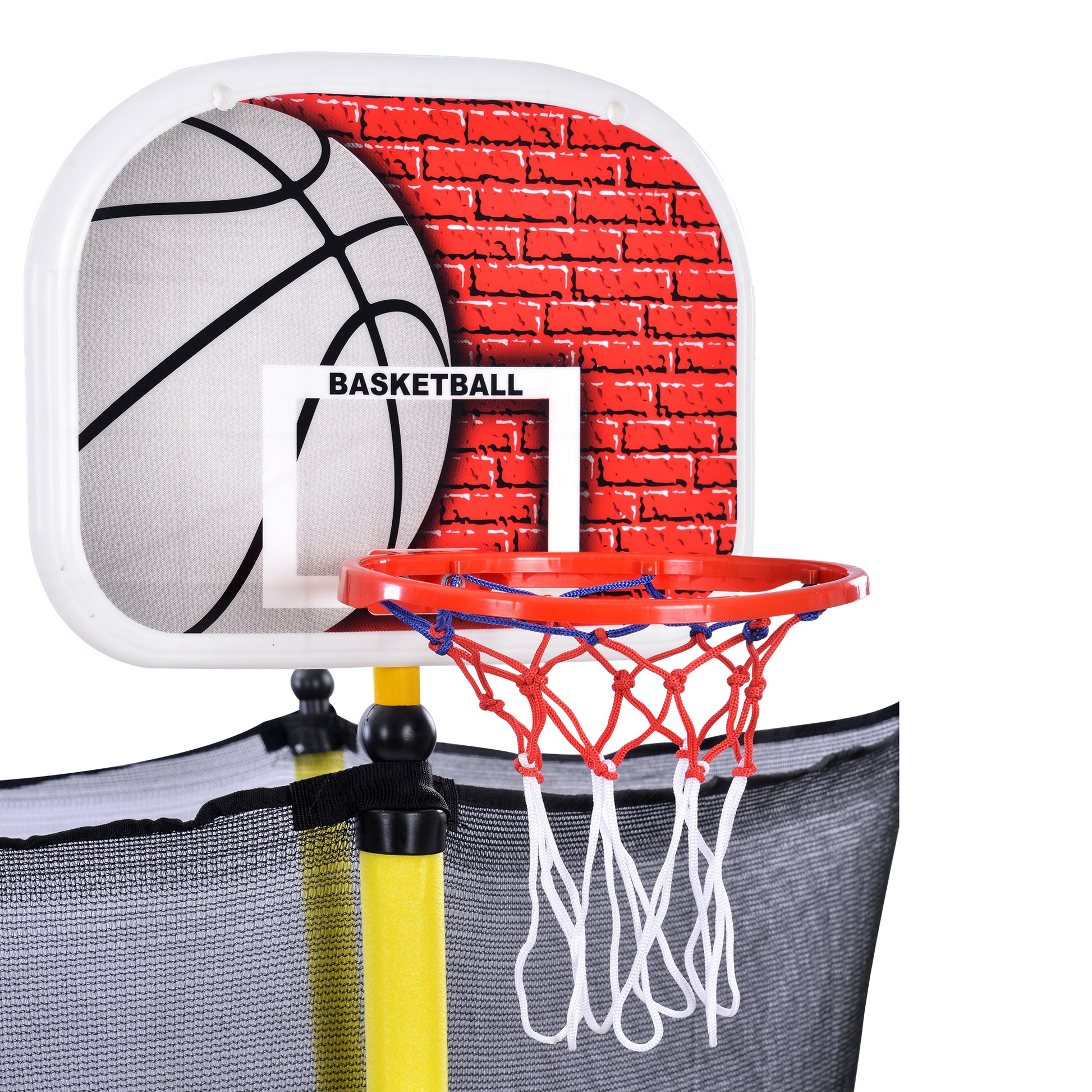 5.5Ft Trampoline For Kids 65" Outdoor & Indoor Mini Toddler Trampoline With Enclosure, Basketball Hoop And Ball Included Yellow Metal