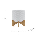 5" Chevron Planter W Stand, White White Ceramic