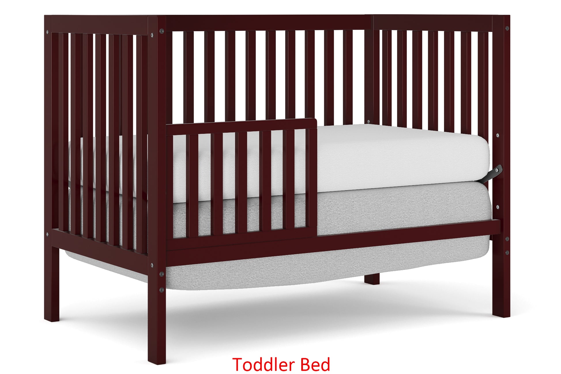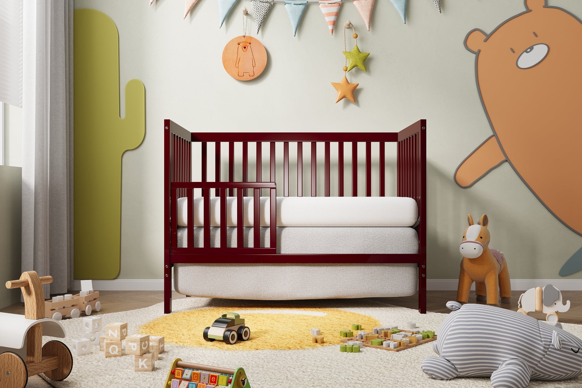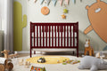 5 In 1 Convertible Crib, Converts From Baby Crib To Toddler Bed, Fits Standard Full Size Crib Mattress ,Easy To Assemble 53*29*9 Inches Cherry Cherry Classic Pine Wood