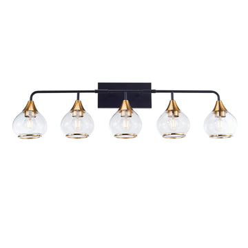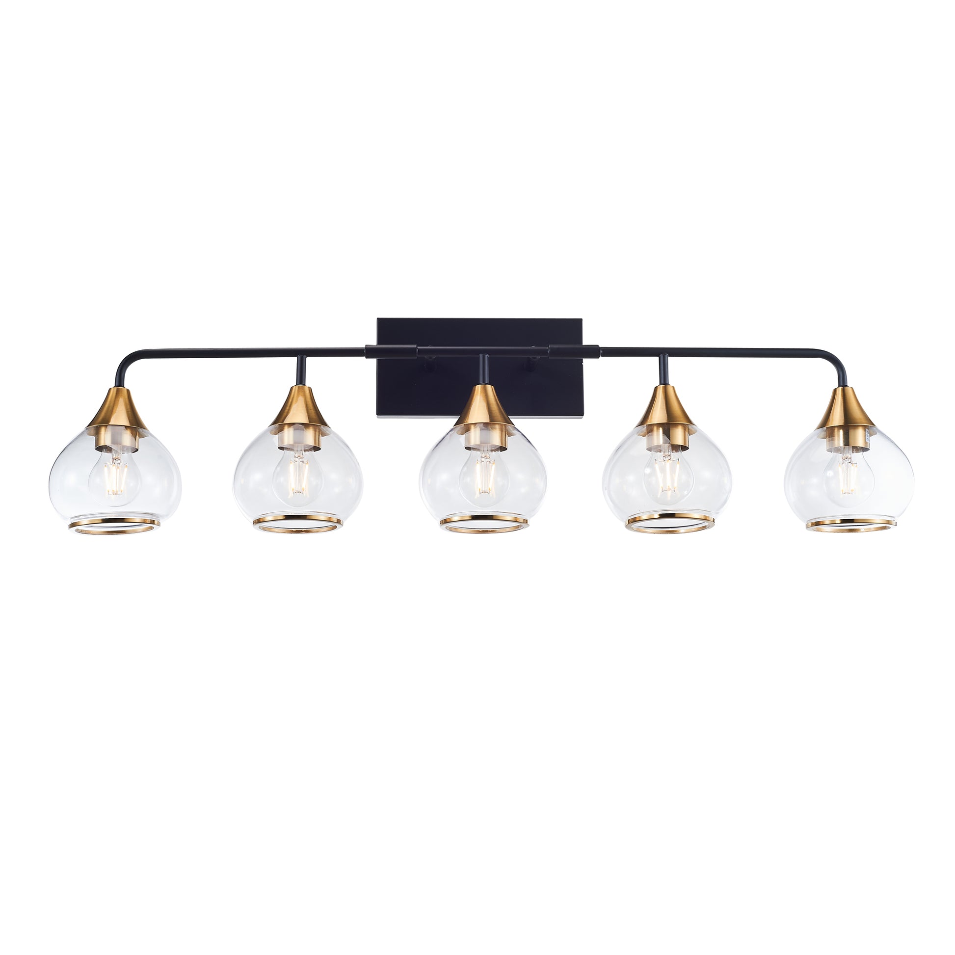 5 Lights Matte Black Antique Brass Color Iron Glass E26 Bulb Bedroom Wall Mounted Lighting Fixtures Bathroom Vanity Light Antique Brass,Matte Black Modern Glass,Iron