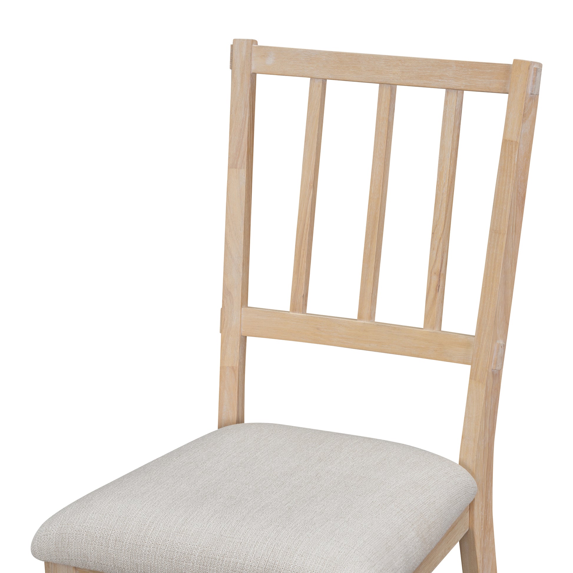 5 Piece Dining Table Set, 44" Round Dining Table With Curved Bench & Side Chairs For 4 5 People For Dining Room And Kitchen Natural Wood Wash Wood Dining Room Distressed Finish Rubberwood Round Dining Table With Chair And Bench Upholstered Chair Wood
