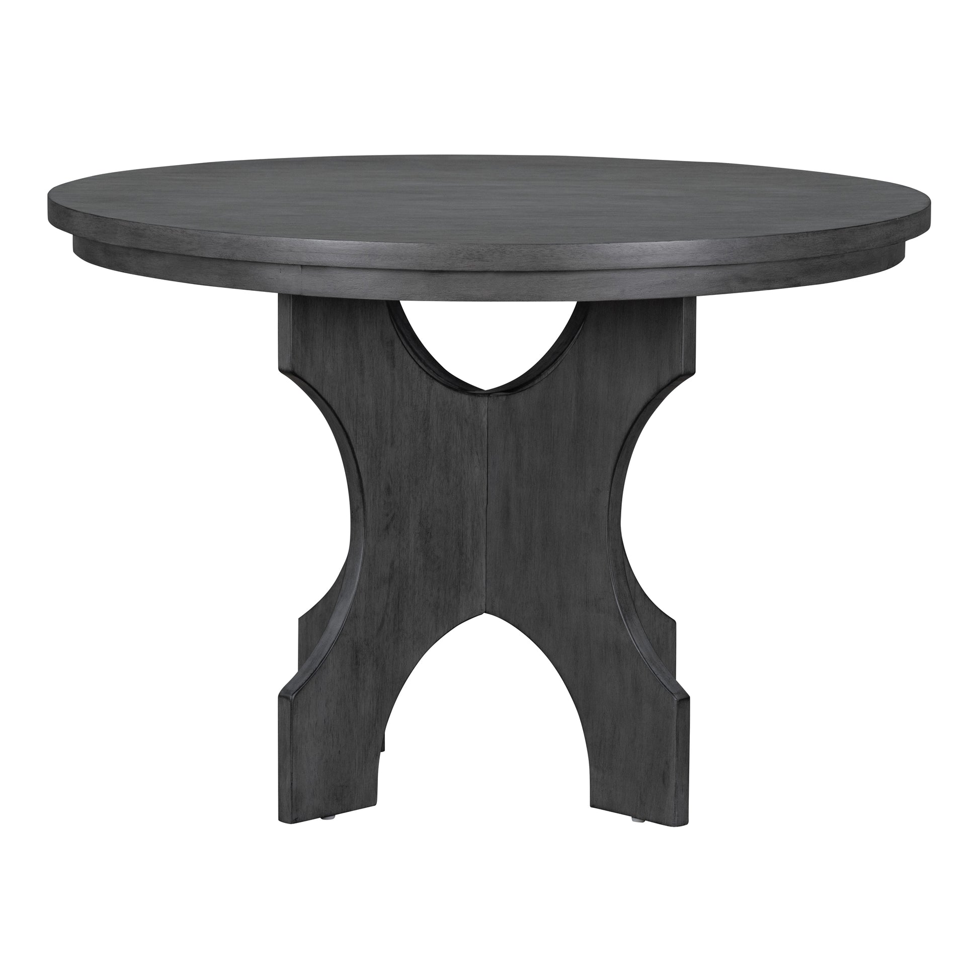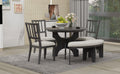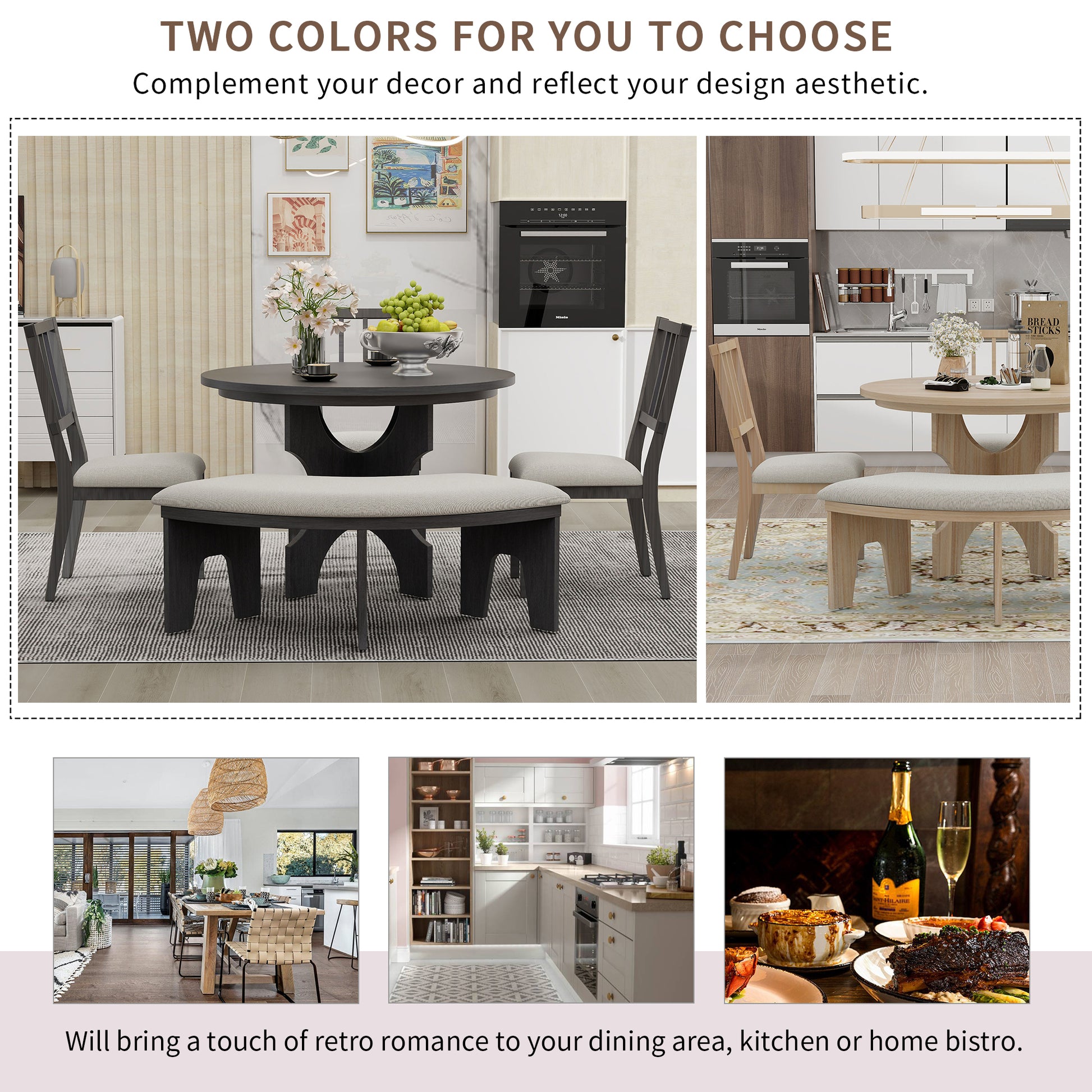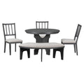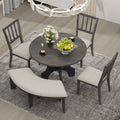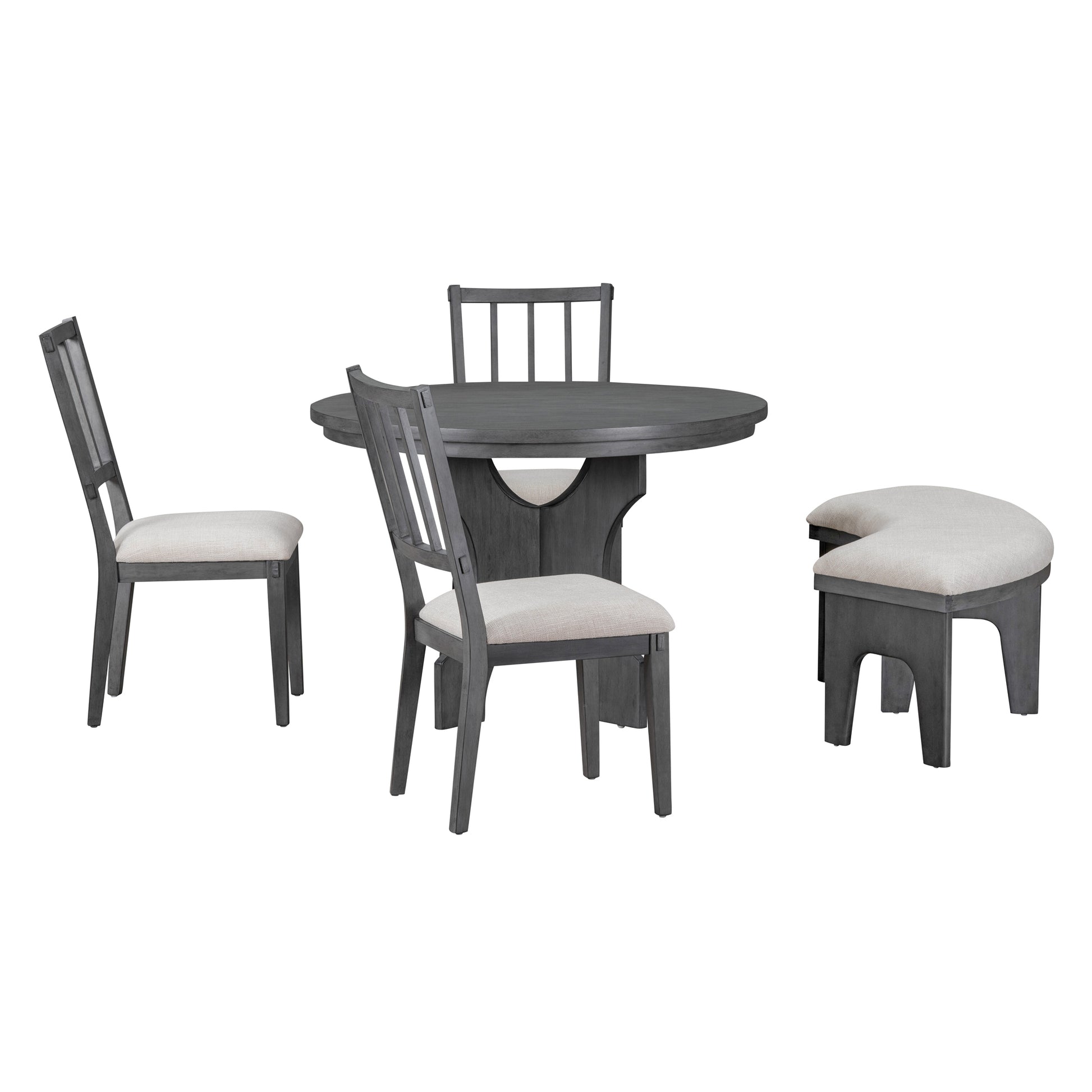 5 Piece Dining Table Set, 44" Round Dining Table With Curved Bench & Side Chairs For 4 5 People For Dining Room And Kitchen Grey Wood Dining Room Distressed Finish Rubberwood Round Dining Table With Chair And Bench Upholstered Chair Wood Grey Slat Back