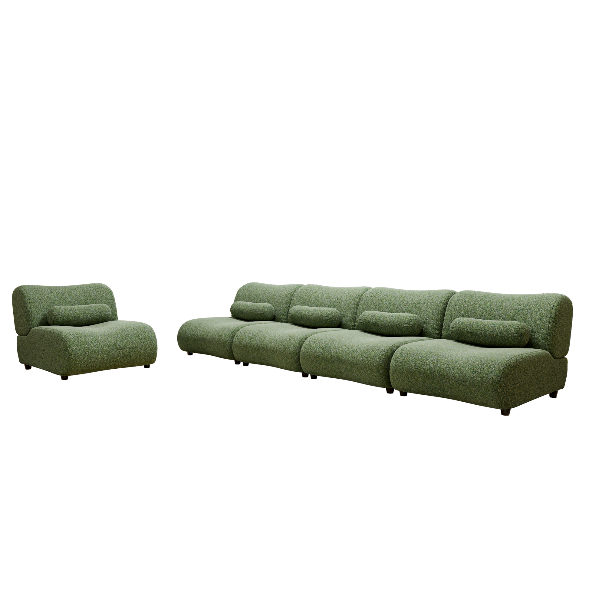 5 Piece Green Modular Cloud Sofa With Comfortable Recline & Sleek Design Chenille Upholstered Sectional Sofa For Living Room Elegant & Versatile Seating Green Chenille 5 Seat