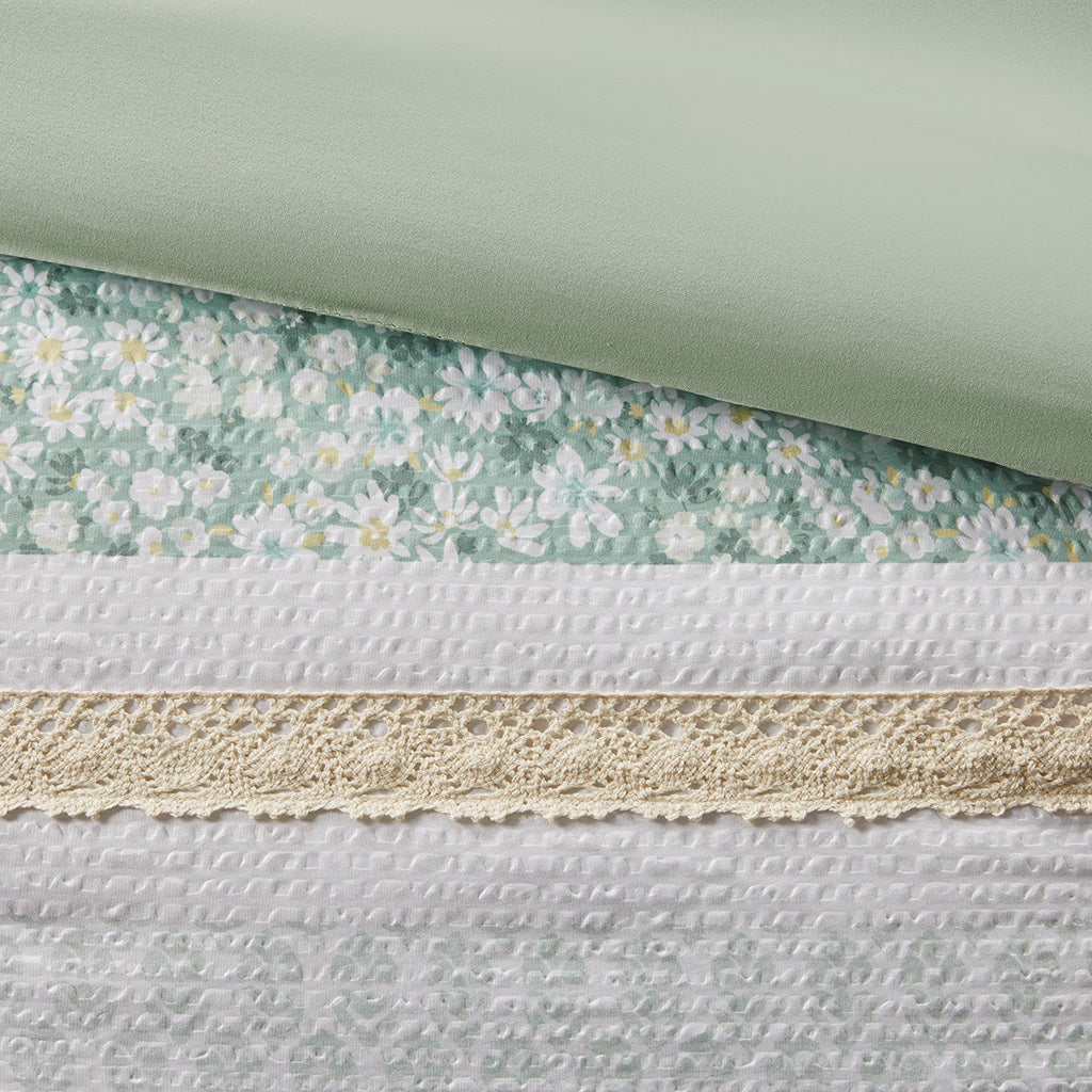 5 Piece Seersucker Comforter Set With Throw Pillows Green Polyester