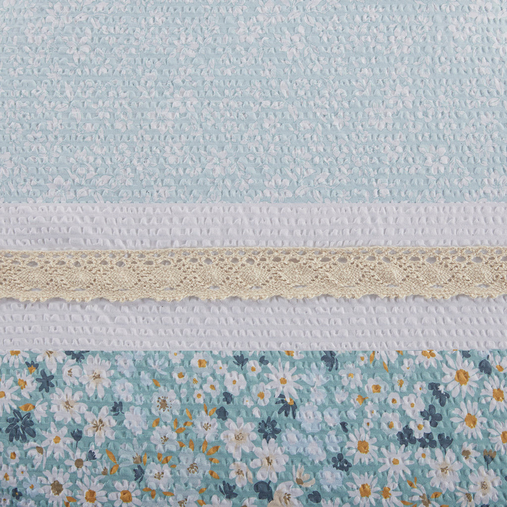 5 Piece Seersucker Comforter Set With Throw Pillows Aqua Polyester
