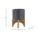 5" Planter W Wood Stand, Matte Gray Gray Ceramic