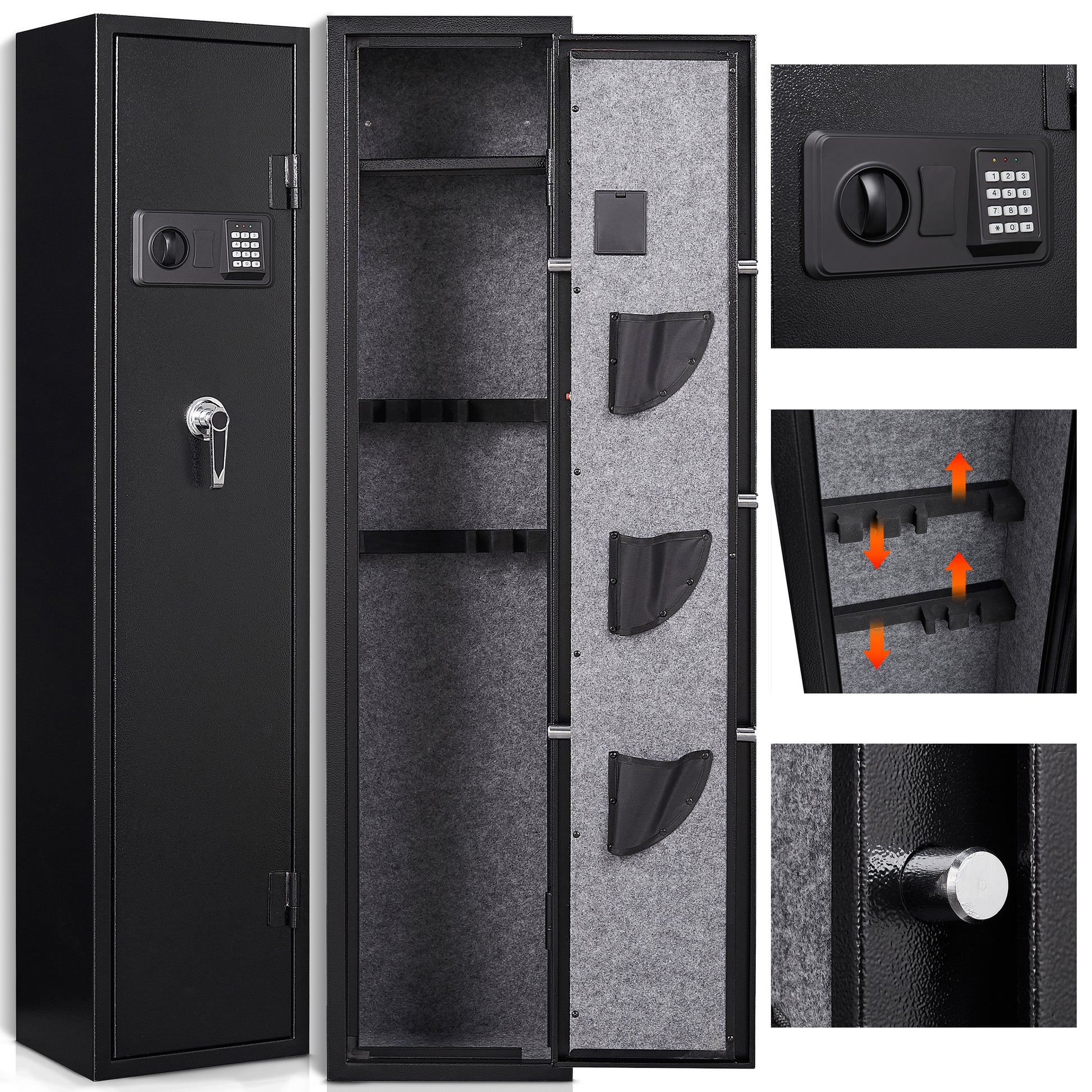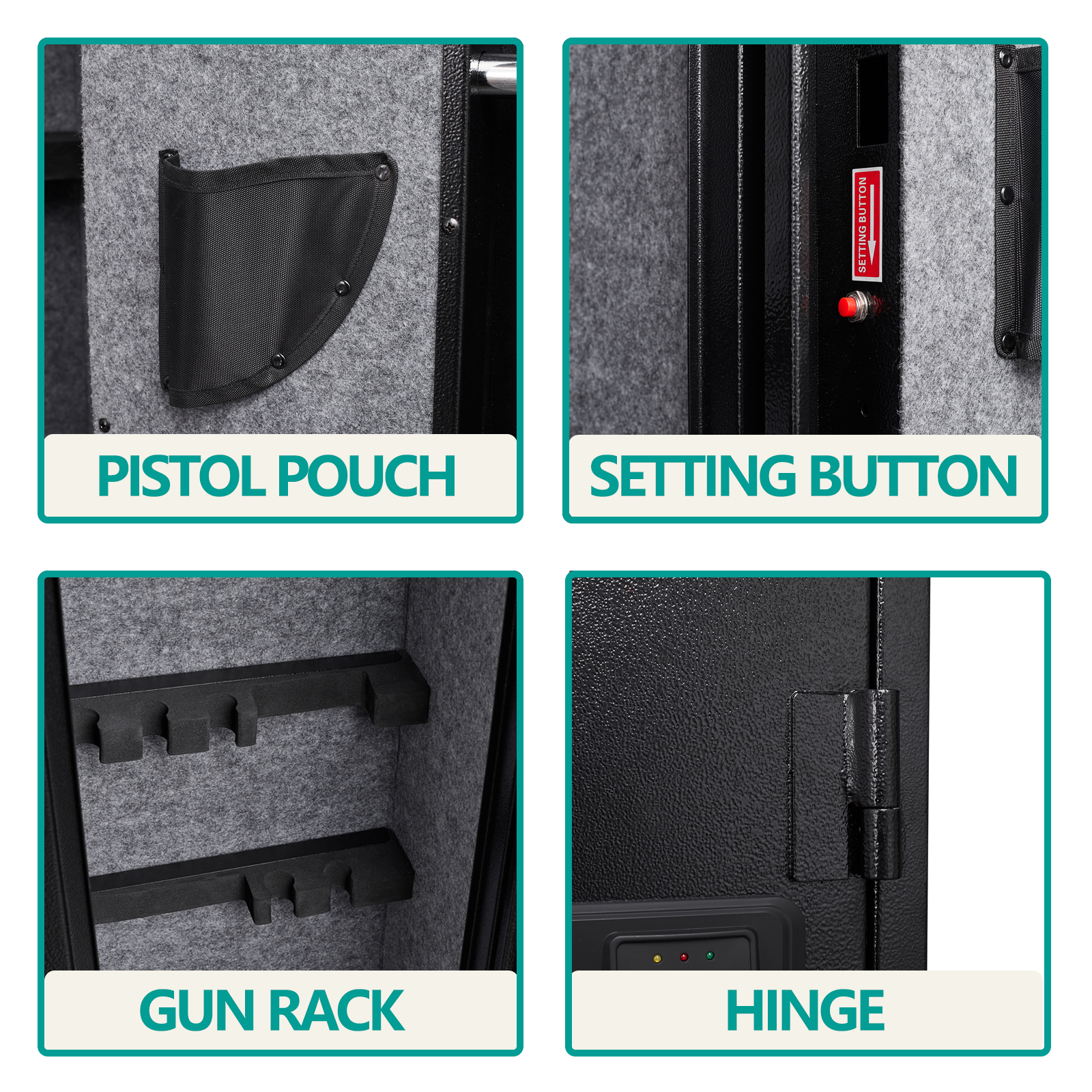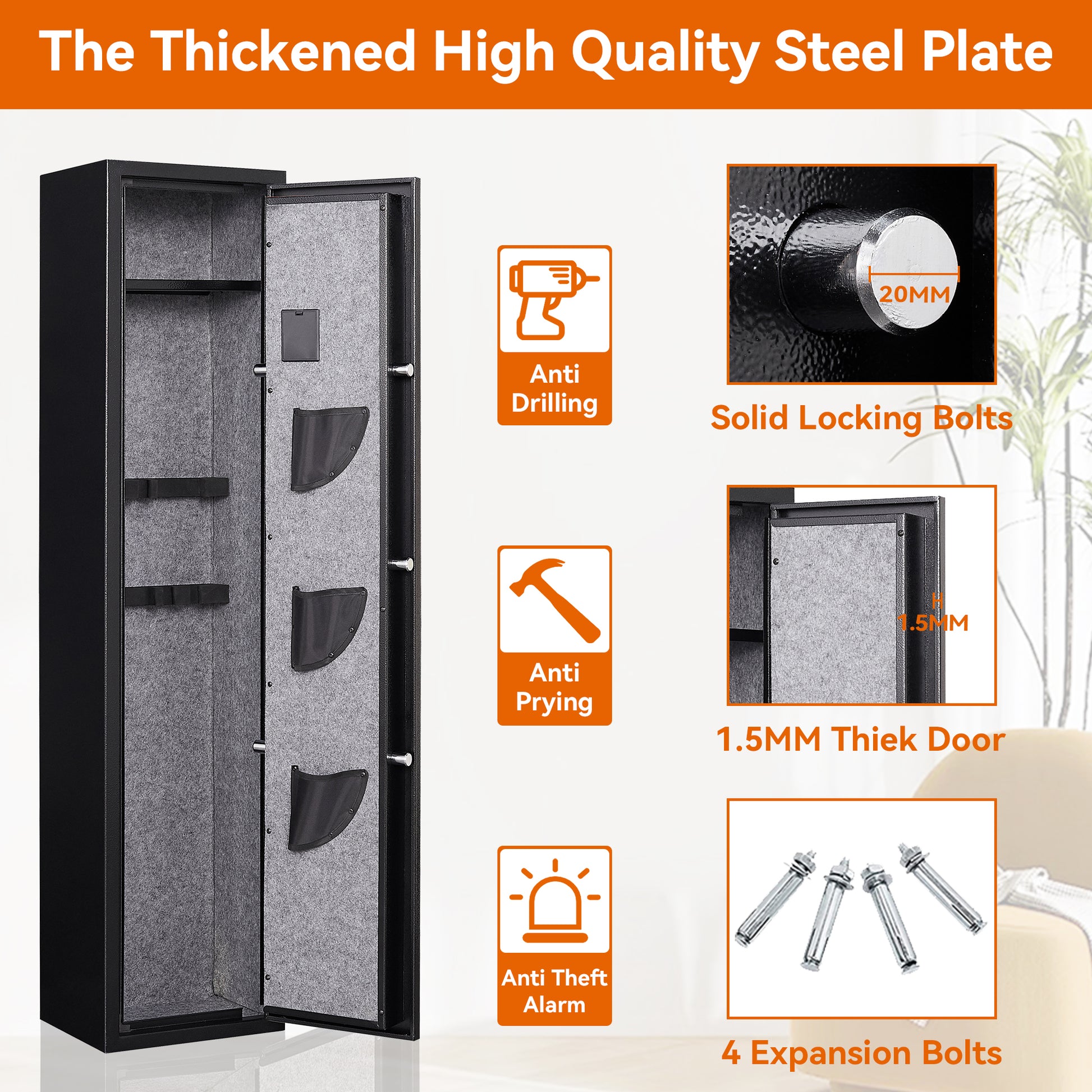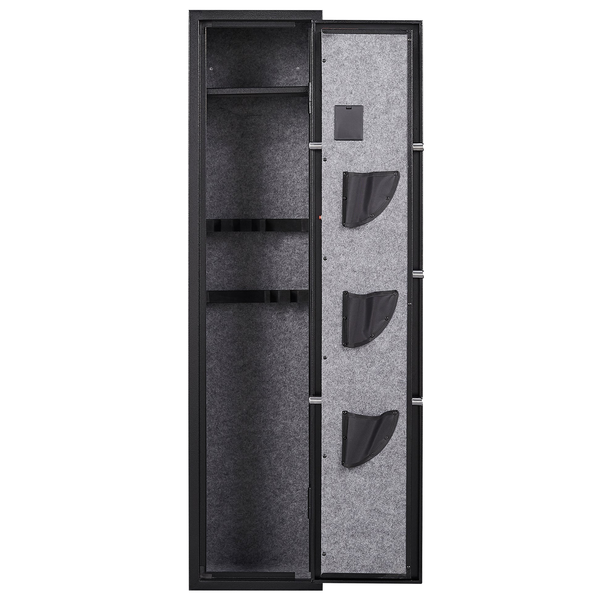 5 Safe For Home Rifle And Pistols, Quick Access Electronic Keypad Rifle With 3 Pistol Pockets, Build In Cabinet ,Led Light,External Battery Cases And Alarm System Black Steel