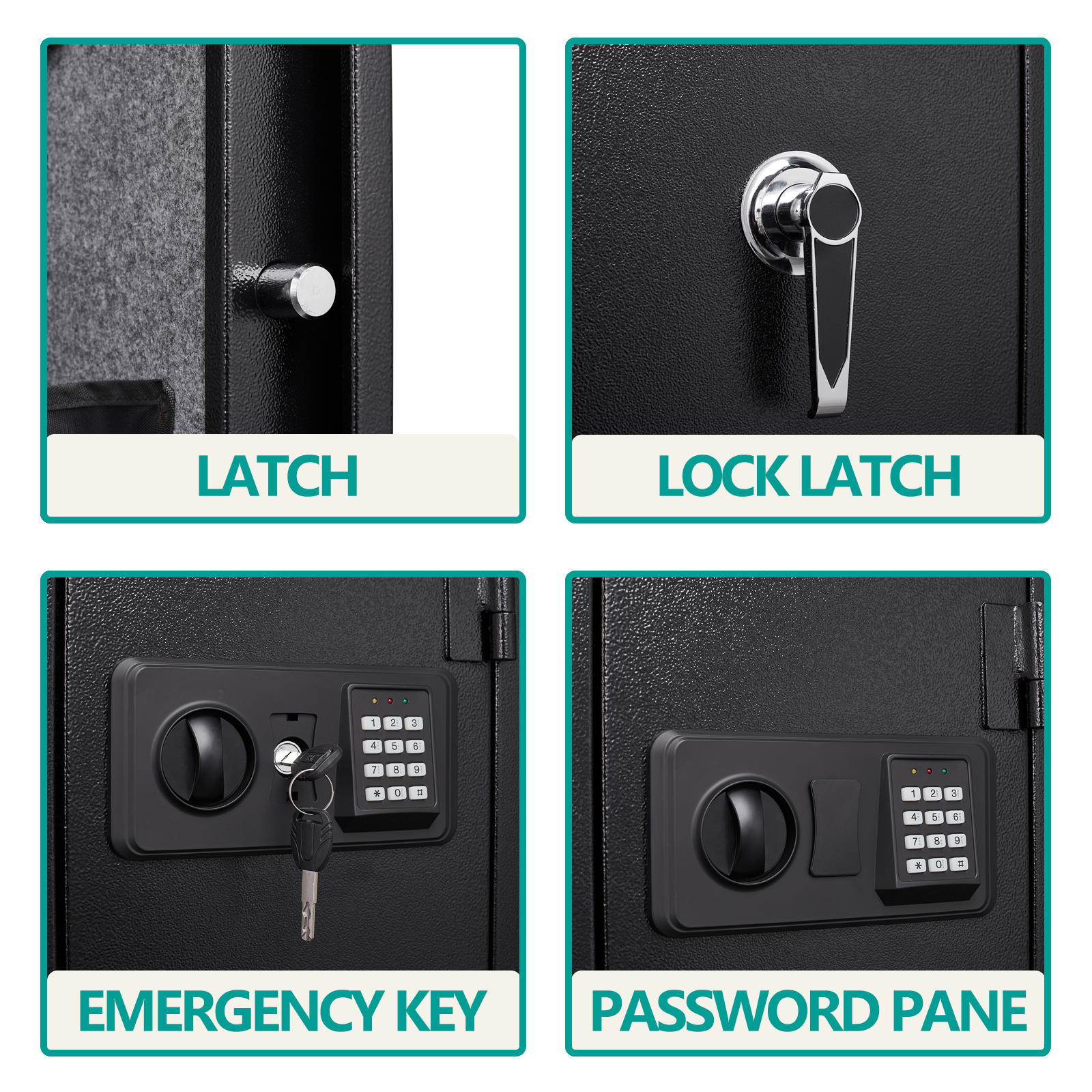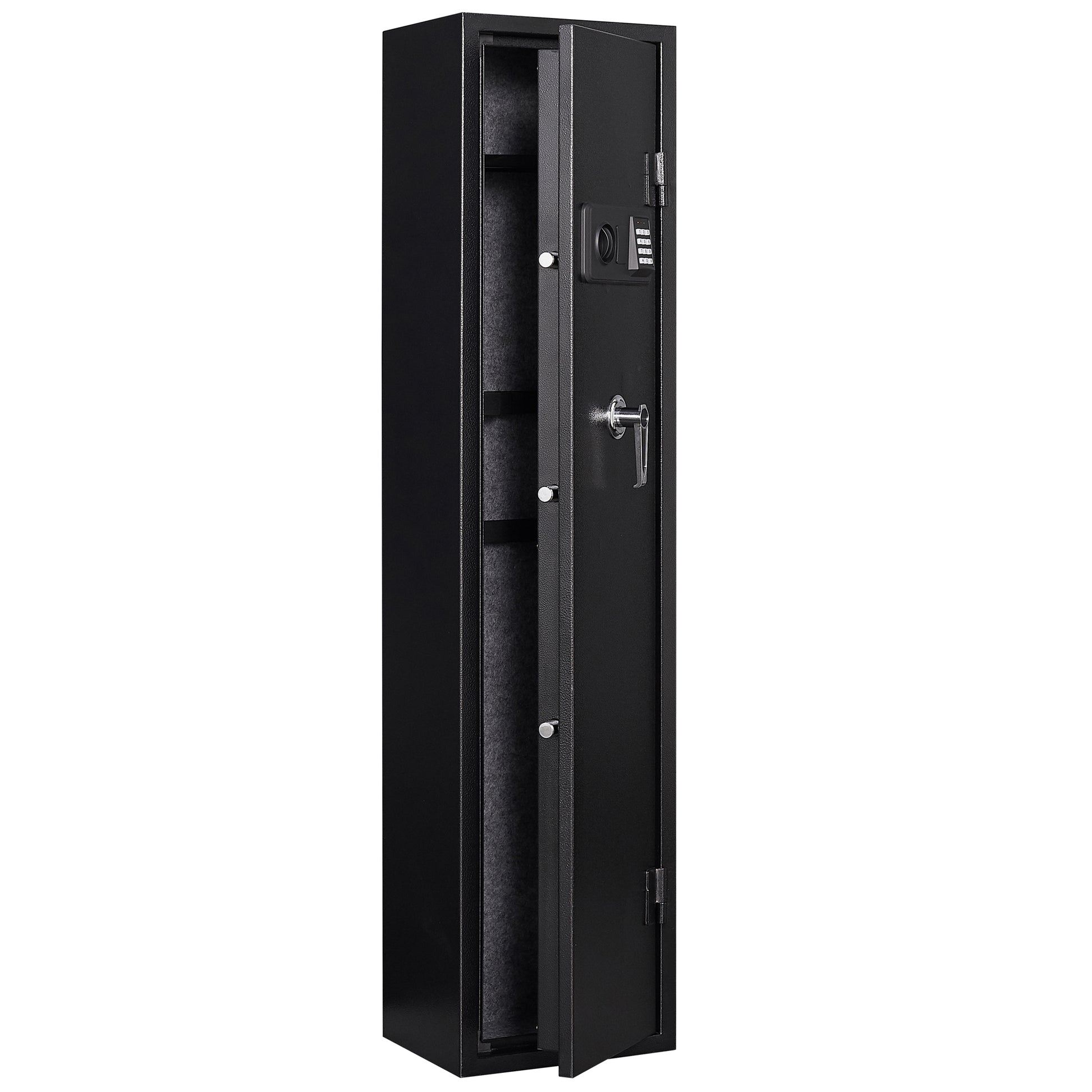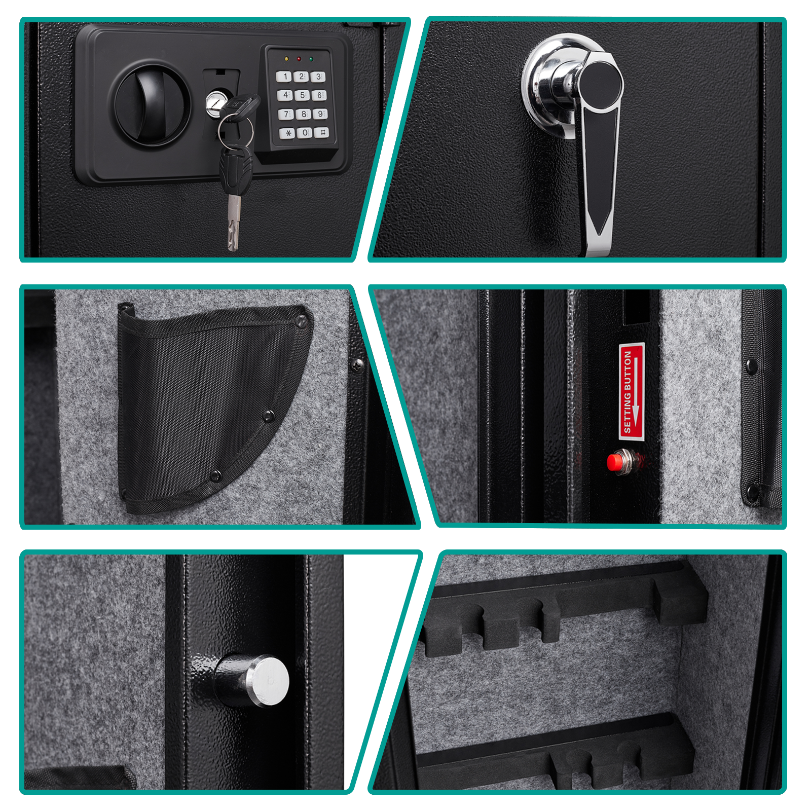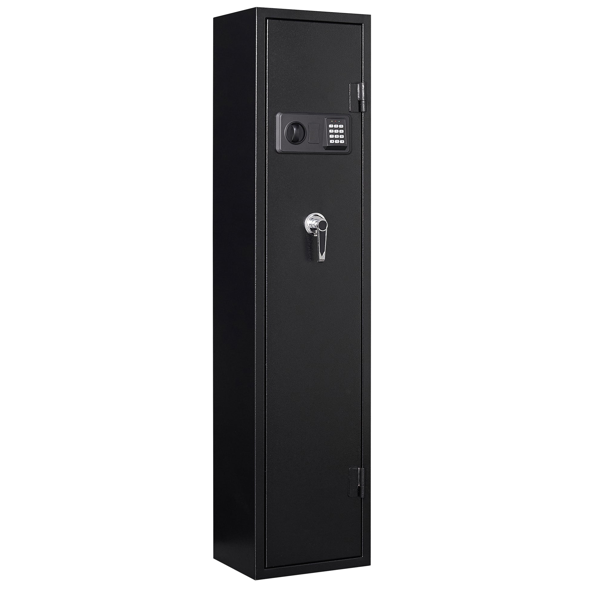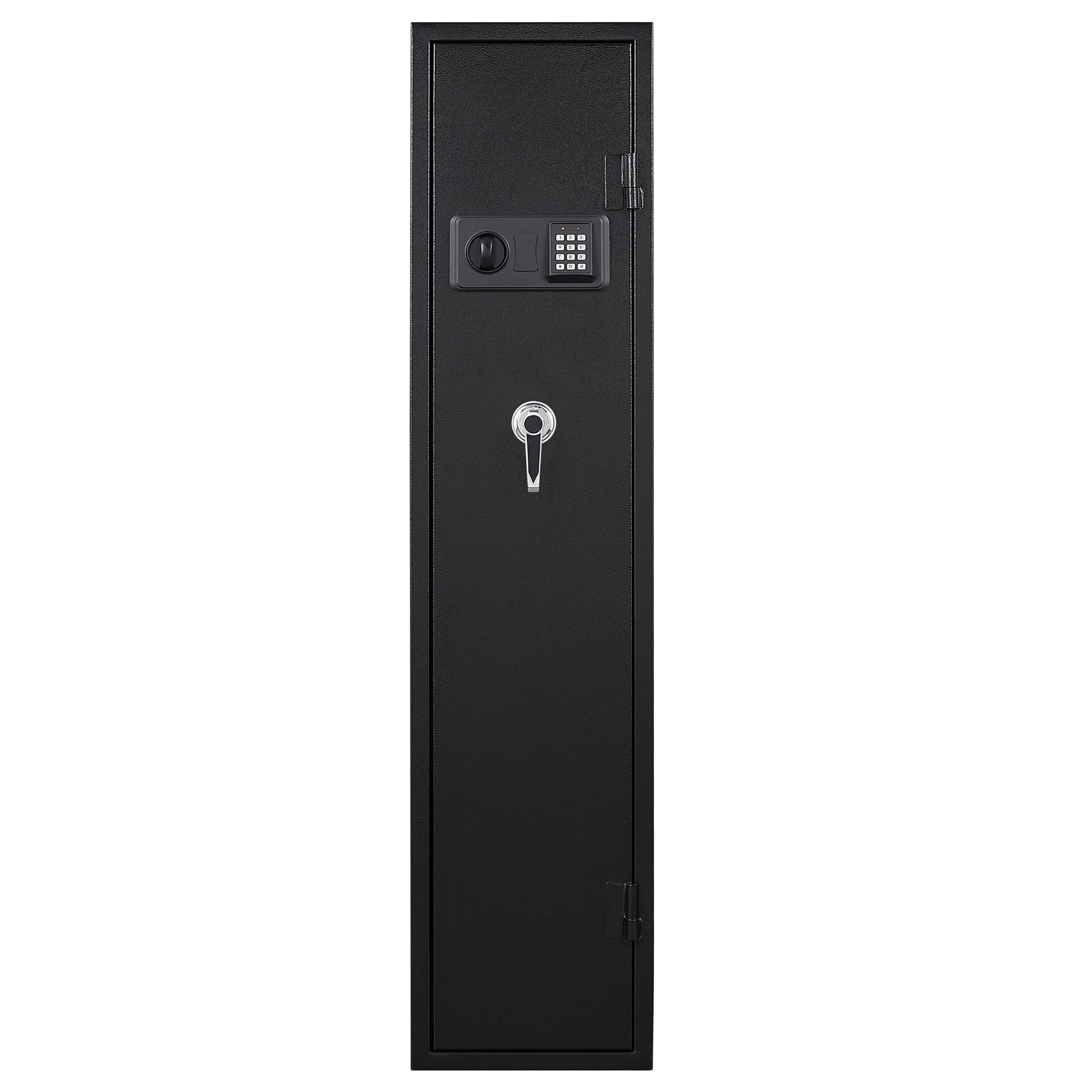 5 Safe For Home Rifle And Pistols, Quick Access Electronic Keypad Rifle With 3 Pistol Pockets, Build In Cabinet ,Led Light,External Battery Cases And Alarm System Black Steel
