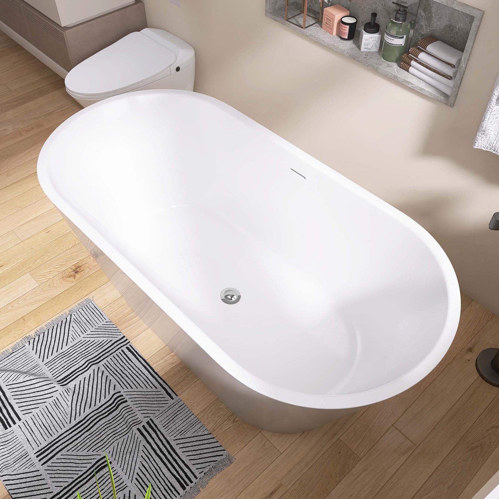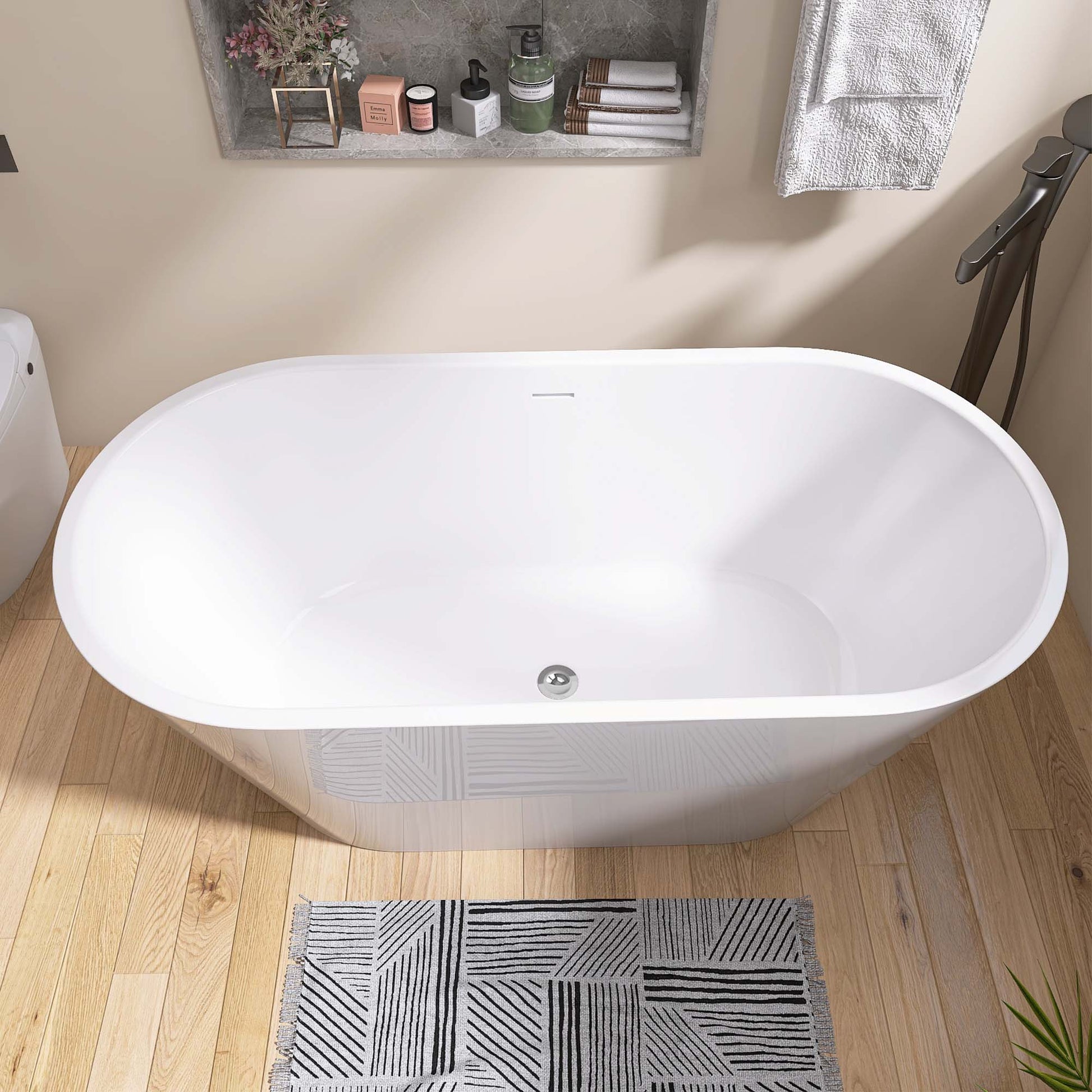 51" Acrylic Free Standing Tub Classic Oval Shape Soaking Tub, Adjustable Freestanding Bathtub With Integrated Slotted Overflow And Chrome Pop Up Drain Anti Clogging Gloss White Gloss White Oval Bathroom Freestanding Tubs Polished Less Than 59 In Modern