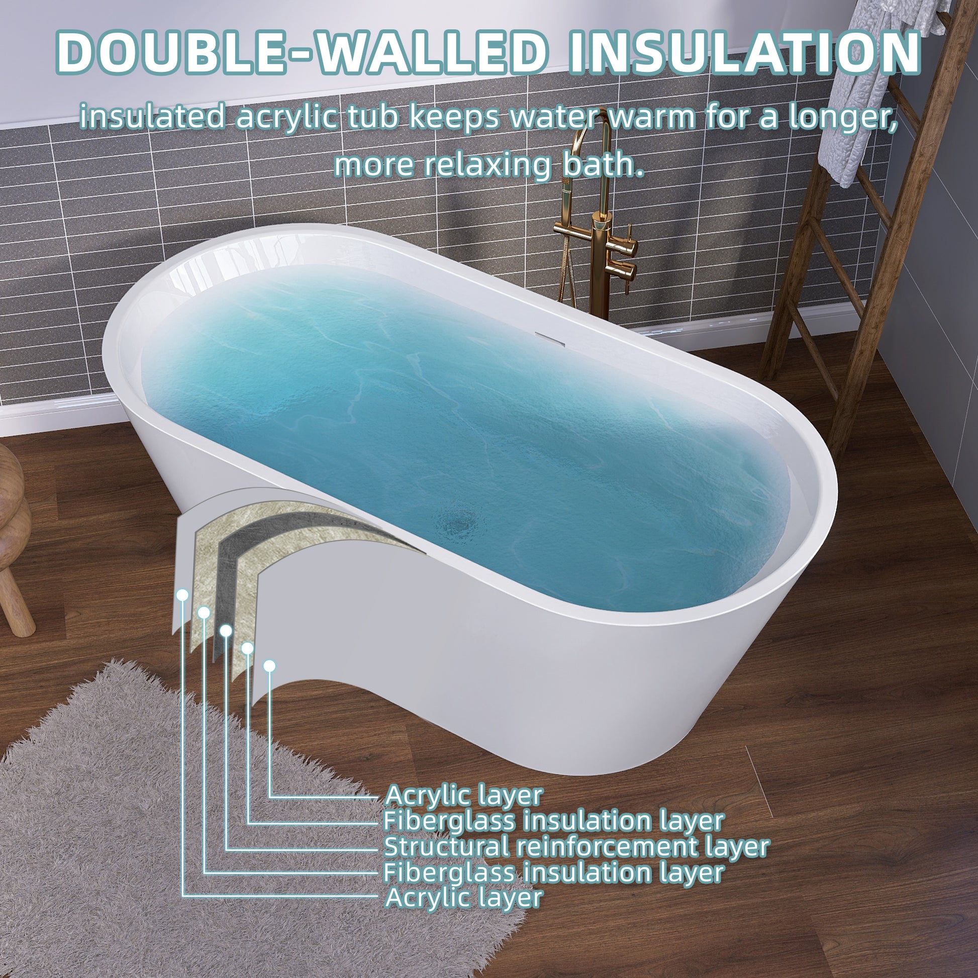 51 Inch Acrylic Freestanding Bathtub Contemporary Soaking White Tub With Overflow And Pop Up Drain Gloss White Gloss White Oval Bathroom Freestanding Tubs Polished Less Than 59 In Modern Soaking Center Fiberglass Acrylic