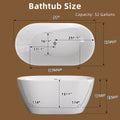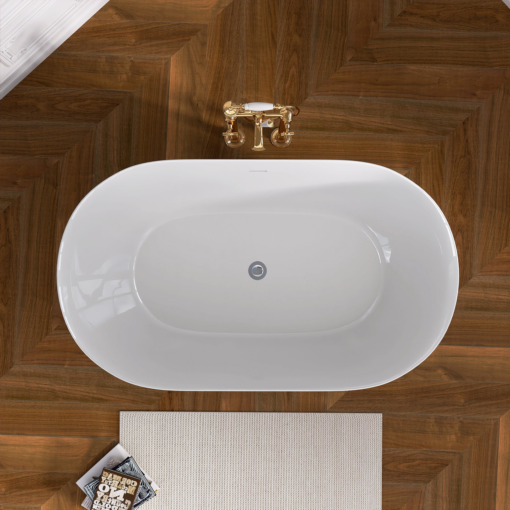 51 Inch Acrylic Freestanding Bathtub Contemporary Soaking White Tub With Overflow And Pop Up Drain Glossy White Gloss White Oval Bathroom Freestanding Tubs Polished Less Than 59 In Contemporary,Modern Soaking Center Fiberglass Acrylic