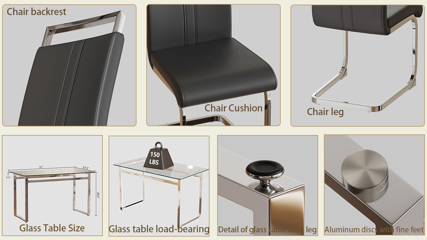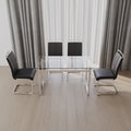 51 Inch Glass Dining Table Set For 4, Dining Table & Chair Sets With Silver Plating Legs For Kitchen, Modern Rectangle Tempered Glass Table Top And Pu Dining Armless Chair For Dining Room
