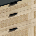 51" Rattan Dresser For Bedroom, 6 Drawer Dresser, Clothes Storage Cabinet For Bedroom, Metal Handle&Wood Legs For Hallway, Living Room, Bedroom,Black Black Mdf Metal