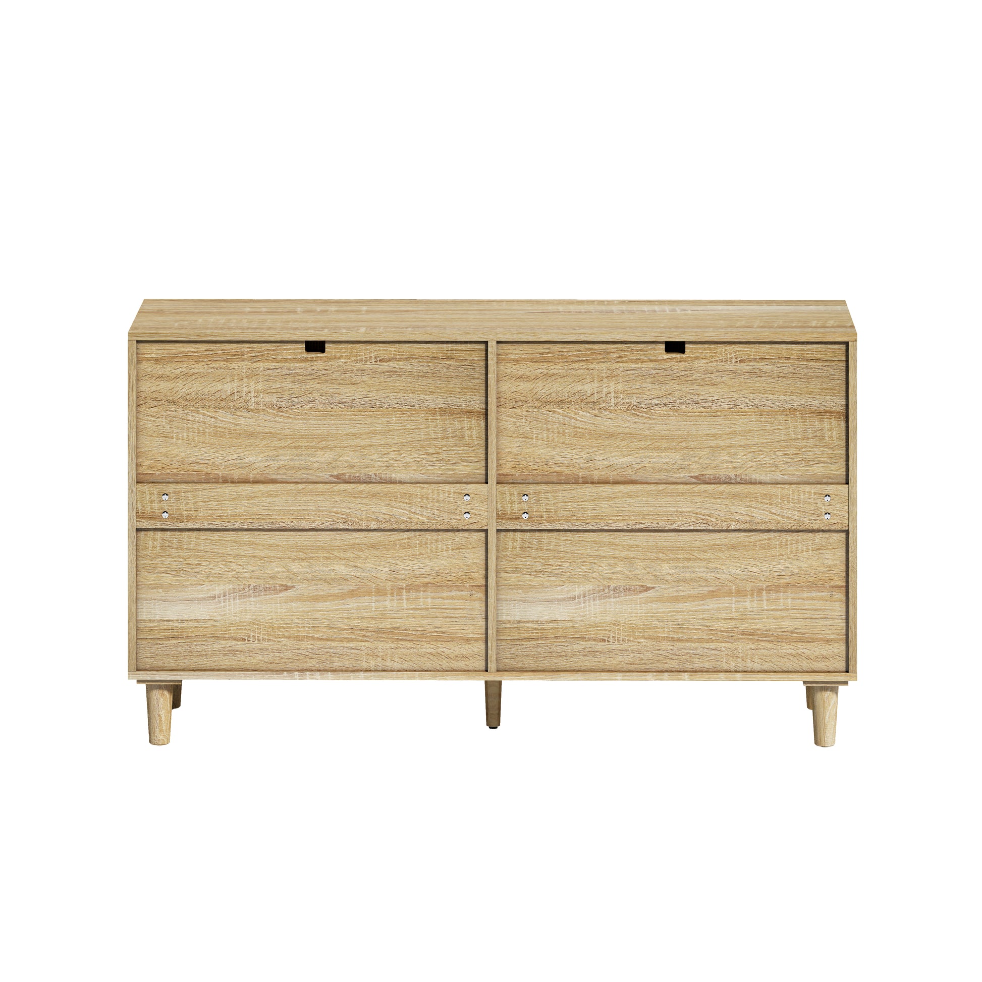 51" Rattan Dresser With Drawers, 6 Drawer Dresser For Bedroom, Clothes Storage Cabinet For Bedroom, Metal Handle&Wood Legs For Hallway, Living Room, Bedroom,Natural Natural Mdf Metal