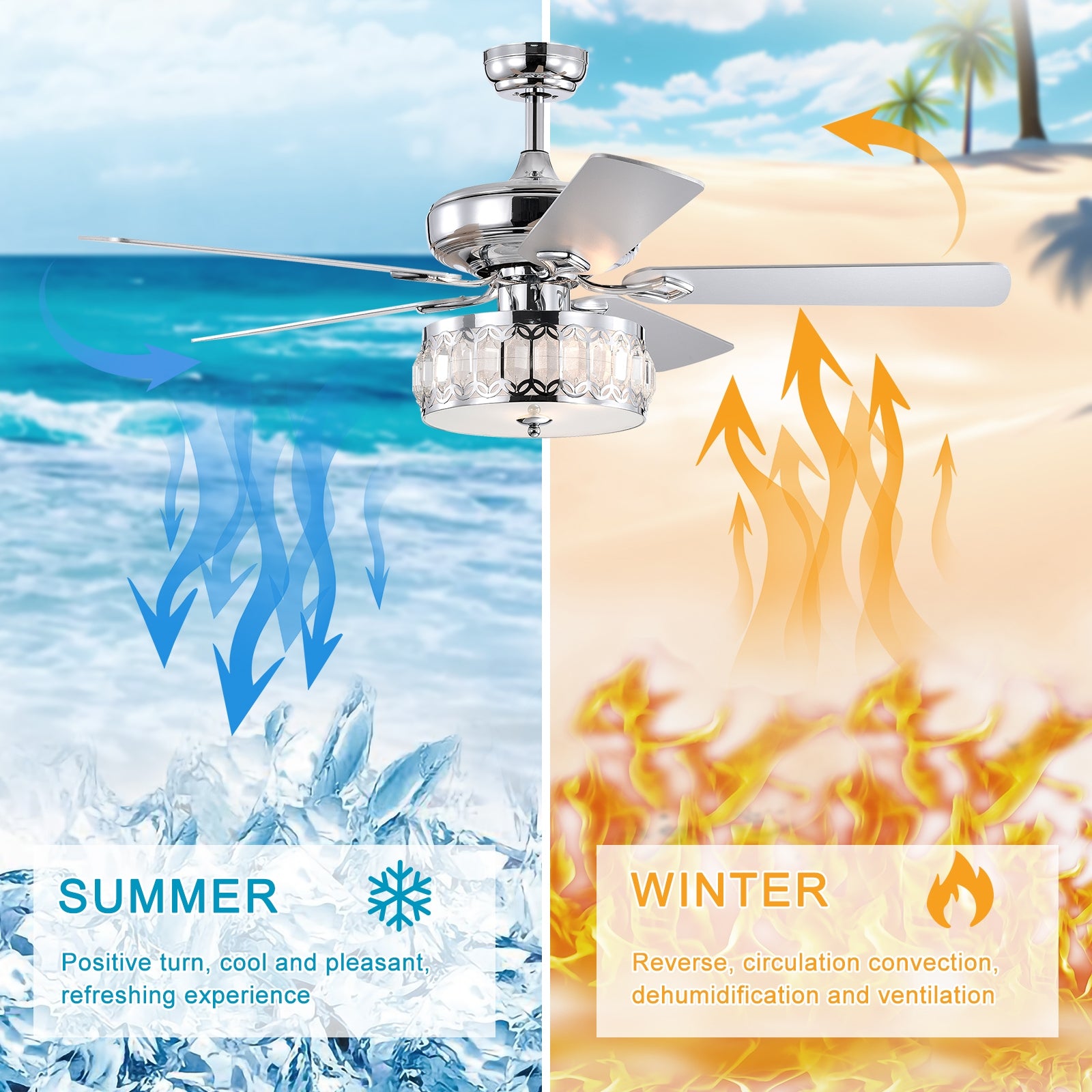52" 3 Light Chrome Ceiling Fan Remote, Traditional Farmhouse Rustic Industrial Bohemian Country Cottage Transitional Glam For Home, Kitchen, Living Room Chrome American Design,American Traditional,Classic,Contemporary,Farmhouse Plywood Metal
