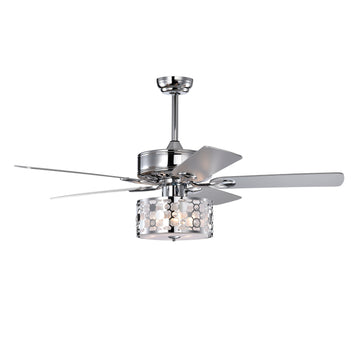 52" Elegant Ceiling Fan Light With Remote, Crystal Chandelier Fan 5 Chrome Reversible Wood Blades For Dinning Room Bedroom Living Room Chrome American Design,Farmhouse,Traditional Crystal Iron