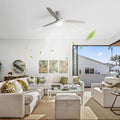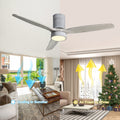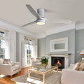 52 Inch 18W Led Ceiling Fan With Dimmable 6 Speed Remote Silver 3 Solid Wood Blade Reversible Dc Motor For Living Room Silver Metal & Wood