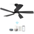 52 Inch Ceiling Fan With Dimmable Led Light 5 Solid Wood Blades Smart Remote Control Reversible Dc Motor Ceiling Fan Black For Home Black Metal & Wood