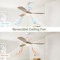 52 Inch Ceiling Fan With Dimmable Led Light 6 Speed Remote 3 Wood Blade Reversible Dc Motor For Bedroom White Metal & Wood