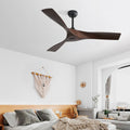 52 Inch Ceiling Fan Without Light, 3 Abs Blades Outdoor Ceiling Fan 6 Speed Reversible Dc Motor For Living Room, Bedroom Black Abs