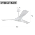 52 Inch Ceiling Fan Without Light, With Remote Control 6 Speed Quiet Reversible Dc Motor White Abs