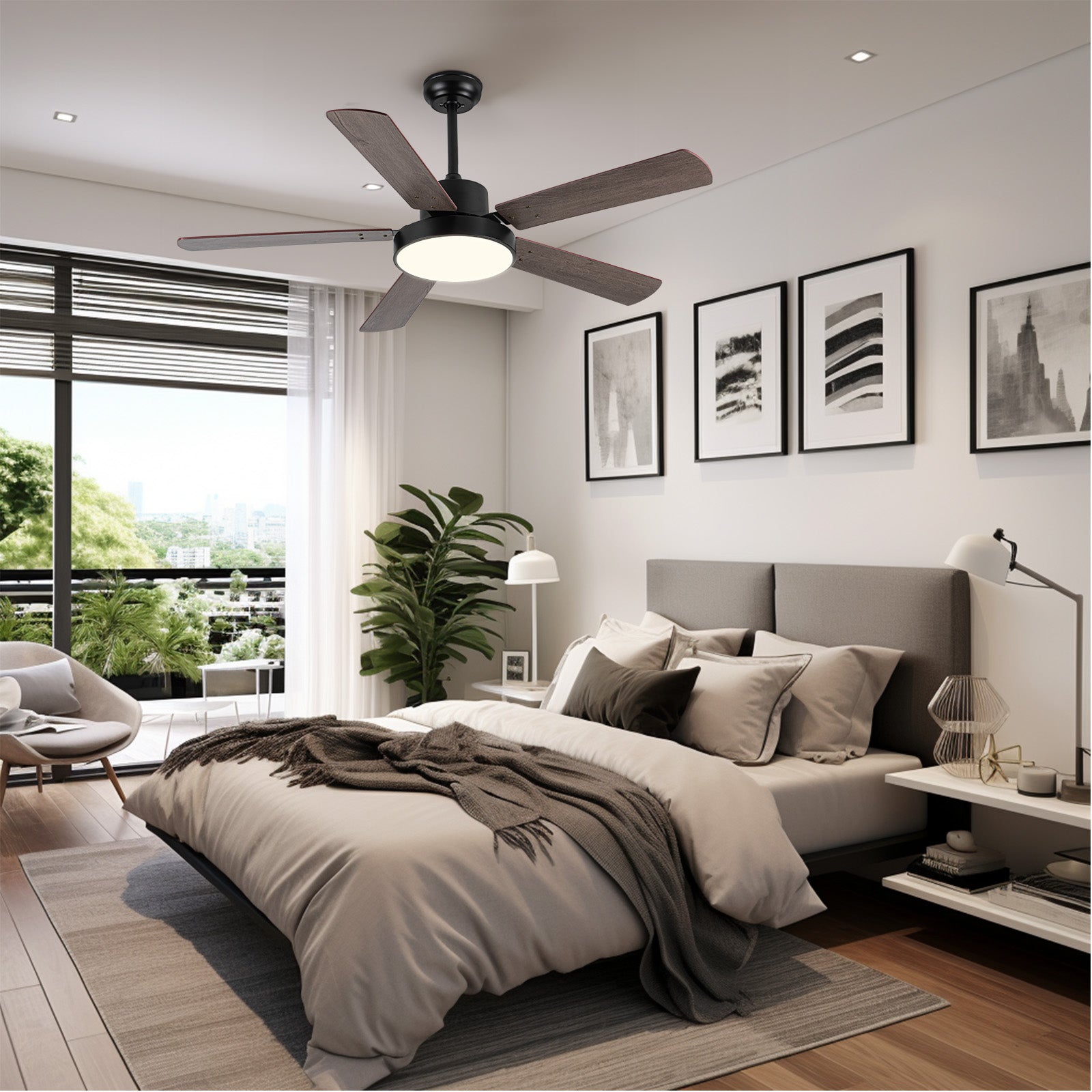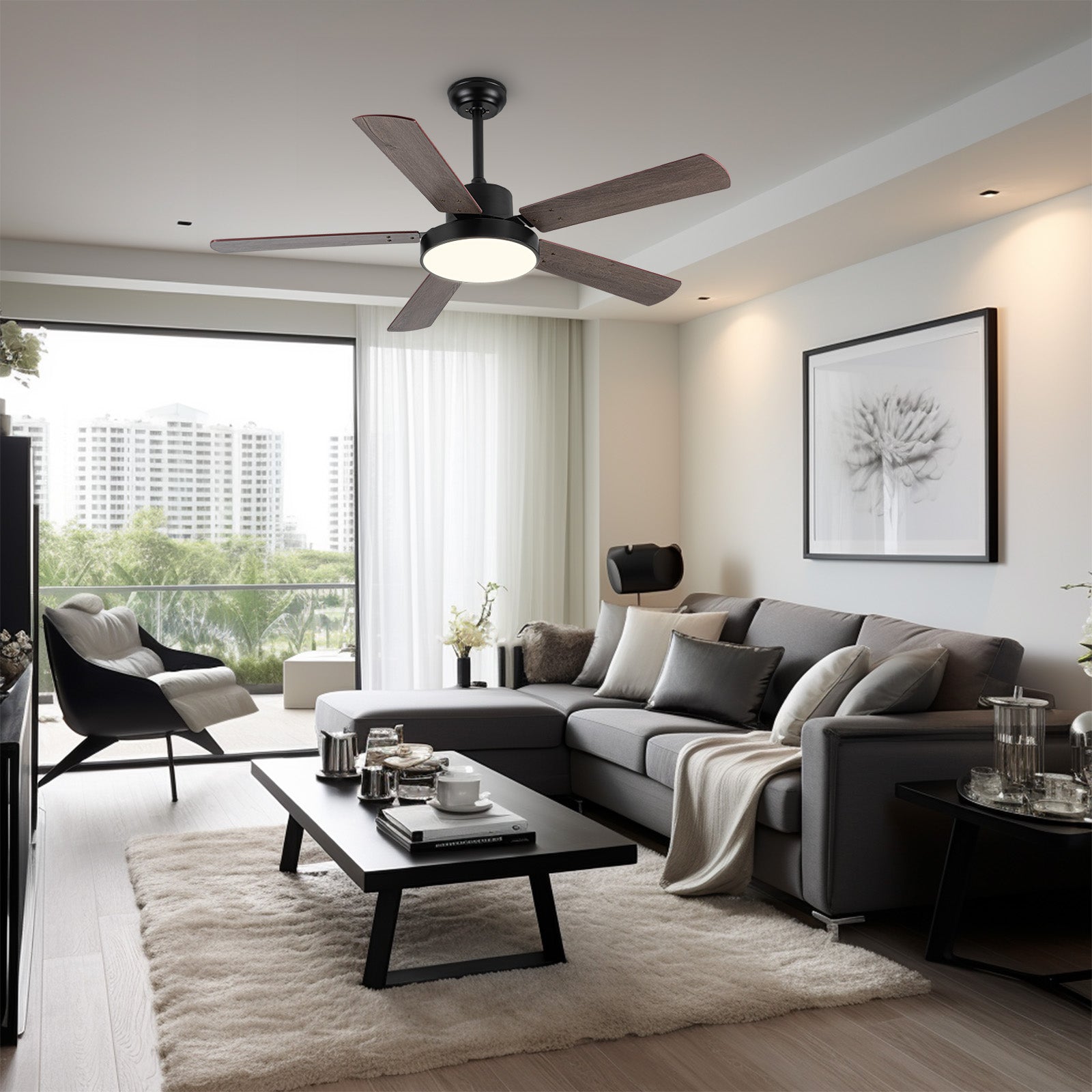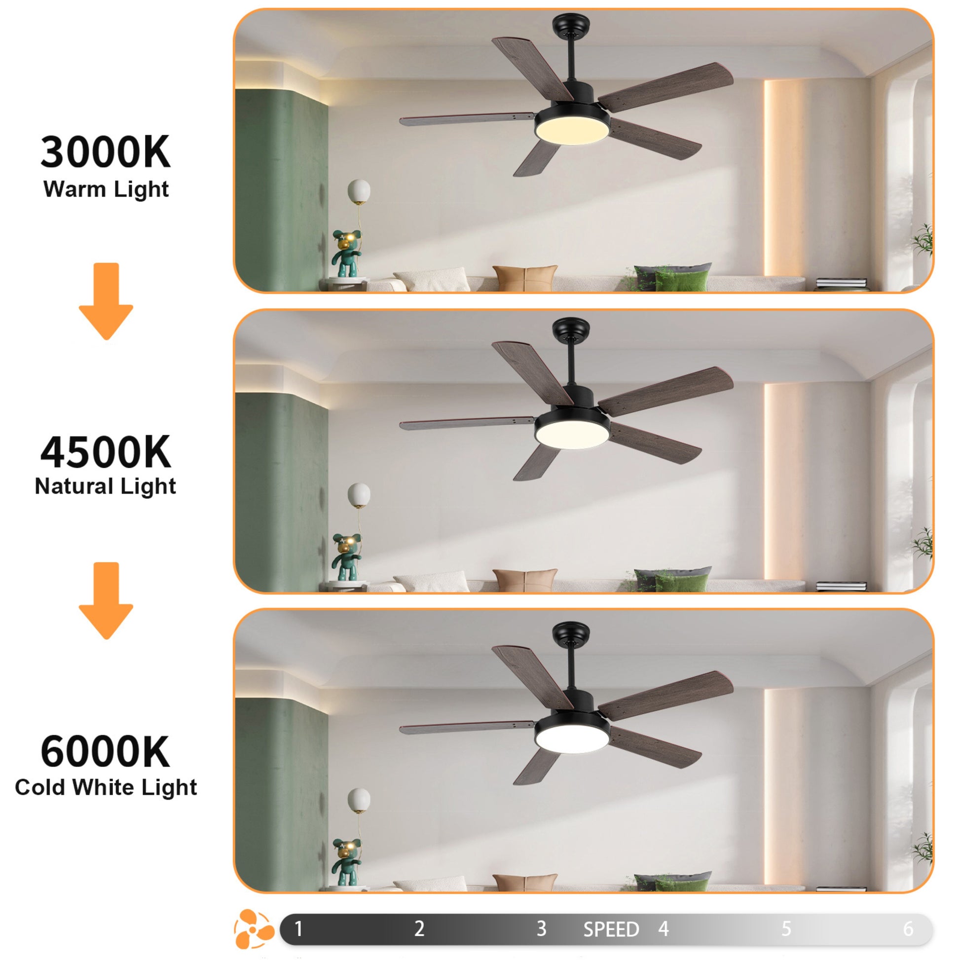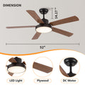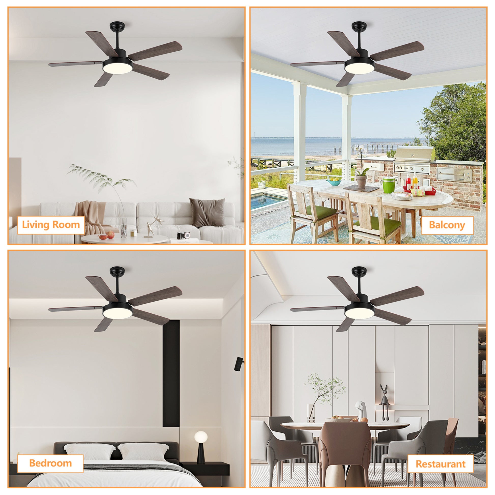 52 Inch Downrod Ceiling Fans With Lights And Remote Control, Modern Outdoor Indoor Wood And Dark 5 Blades Led Lights Smart Ceiling Fans For Bedroom, Living Room, And Patios Wood Wood Stainless Steel
