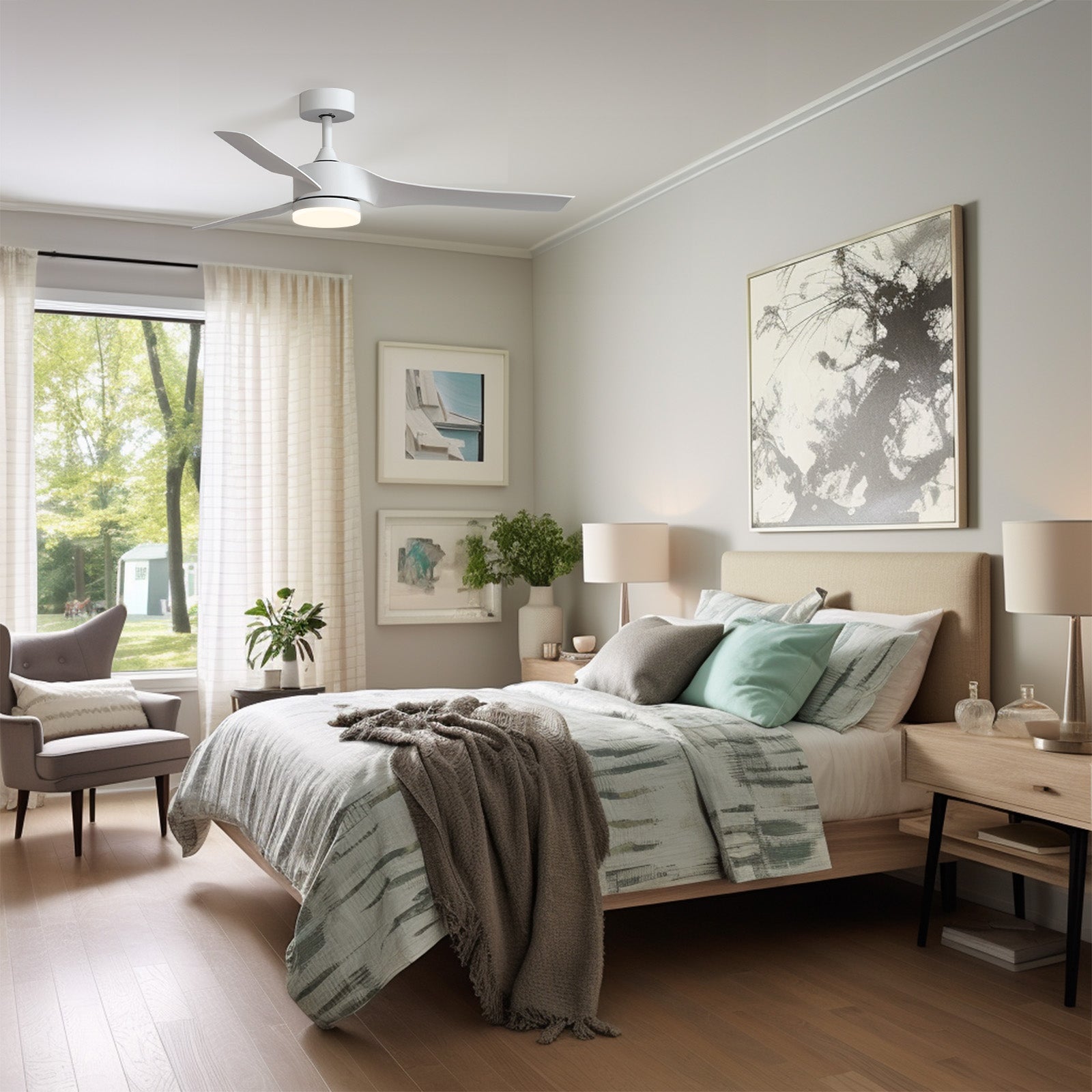 52 Inch Downrod Ceiling Fans With Lights And Remote Control, Modern Outdoor Indoor White 3 Blades Led Lights Smart Ceiling Fans For Bedroom, Living Room, And Patios White Abs Steel Q235