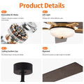 52 Inch Downrod Ceiling Fans With Lights And Remote Control, Modern Outdoor Indoor Black 5 Blades Led Lights Smart Ceiling Fans For Bedroom, Living Room, And Patios Set Of 2 Black Wood Stainless