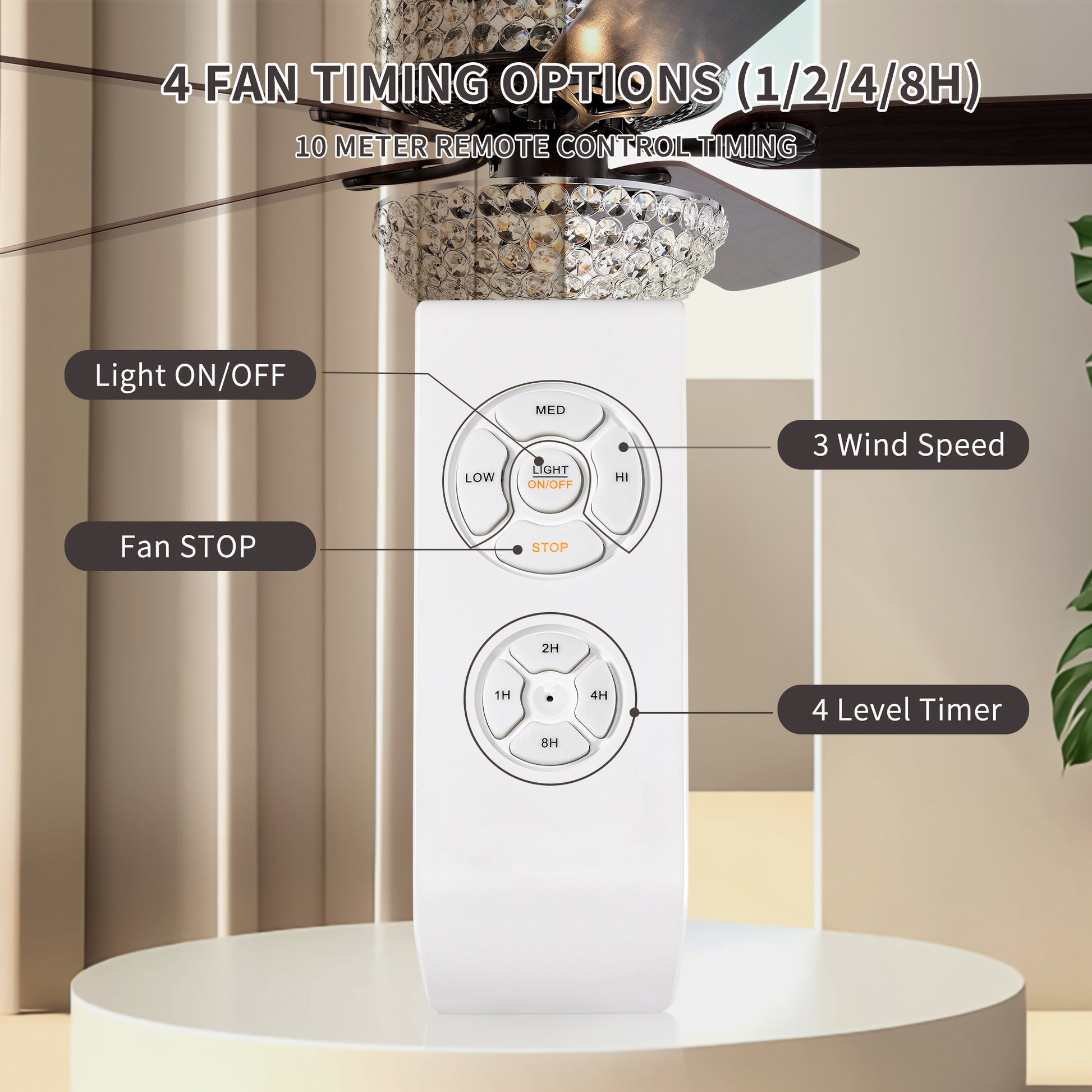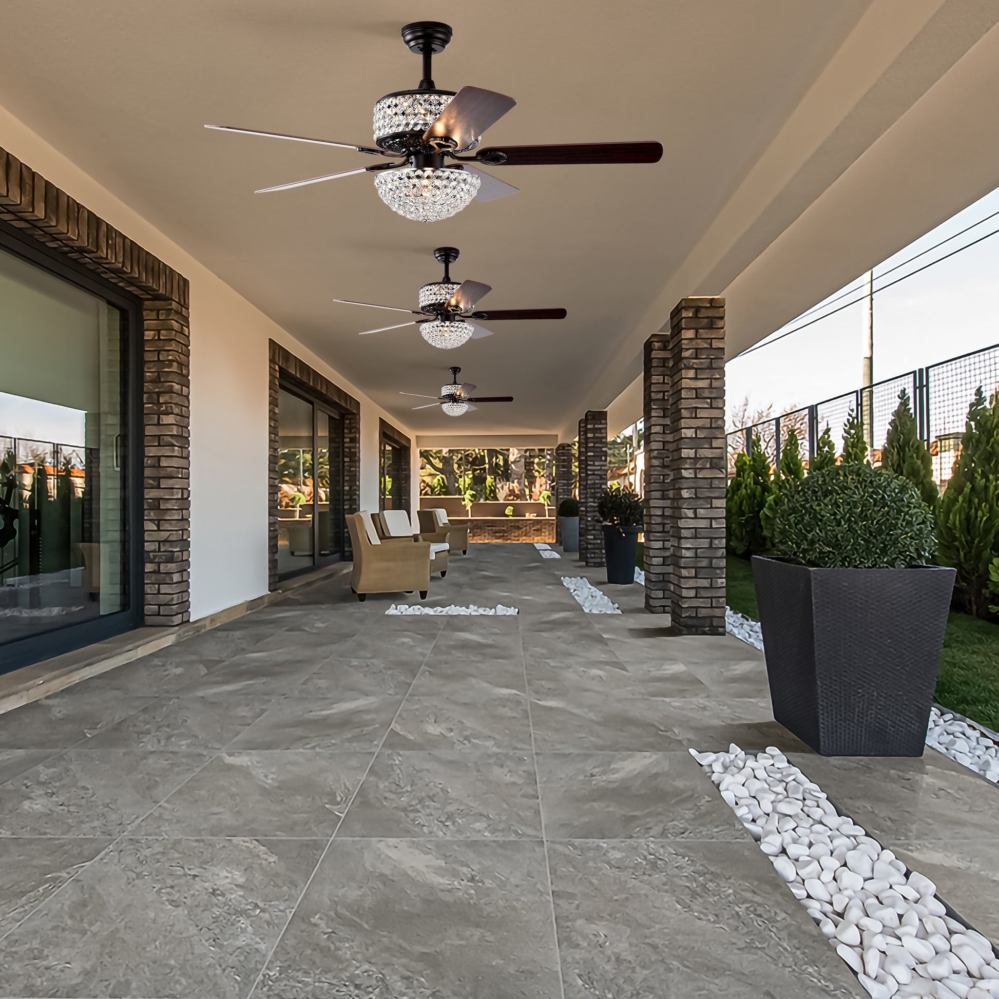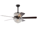 52 Inch Dual Crystal Shade Ceiling Fan With 5 Wood Blades, Two Color Fan Blade, Ac Motor, Remote Control, Reversible Airflow, Multi Speed, Adjustable Height, Traditional Ceiling Fa No Include Bulbs Matt Black American Design,American