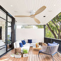 52 Inch Indoor 3 Solid Wood Blade Ceiling Fan Noiseless Reversible Dc Motor Remote Control White Metal & Wood