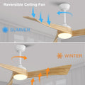 52 Inch Minimalist Ceiling Fan Light With 6 Speed Remote Energy Saving Dc Motor Matte White Metal & Wood