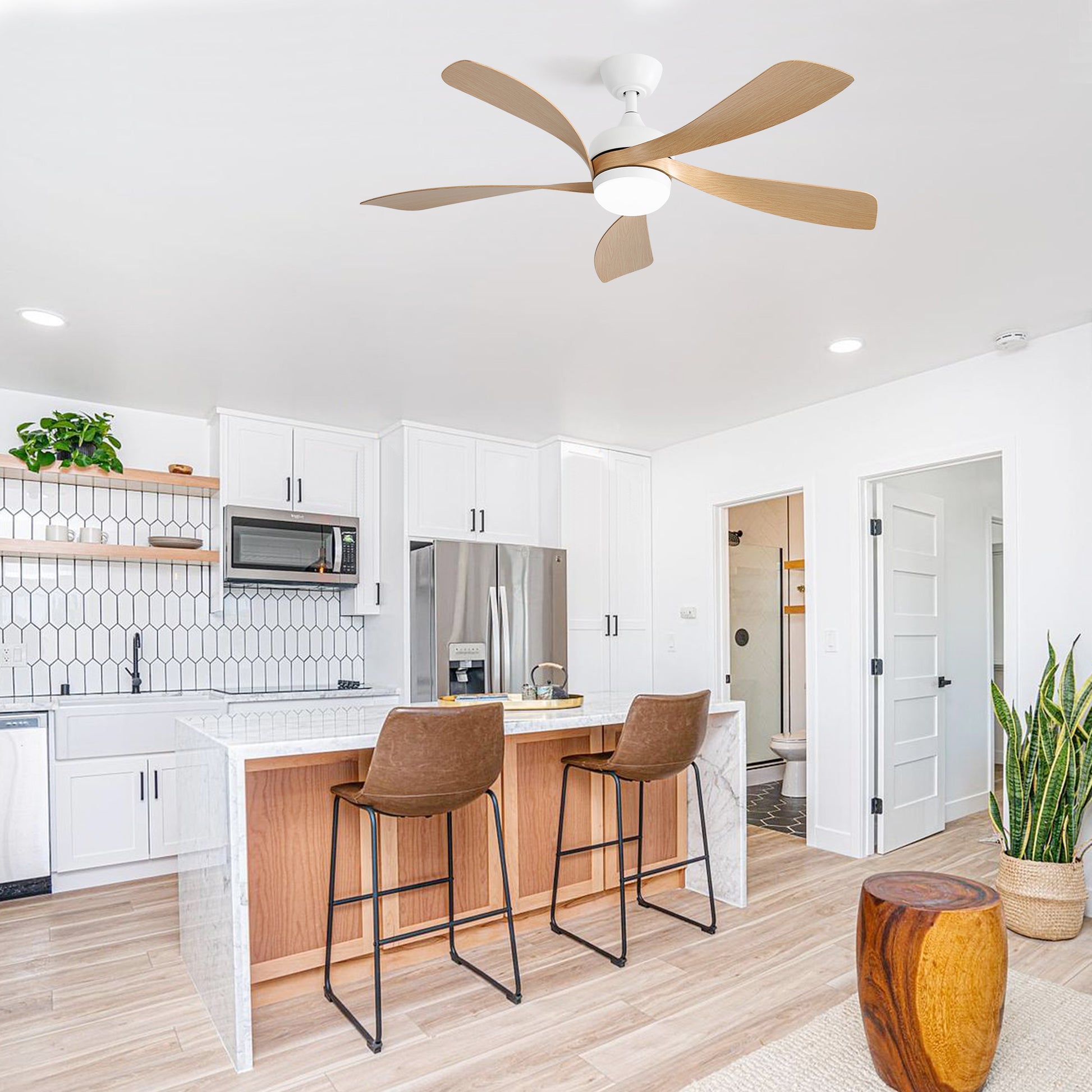 52 Inch Modern Led Ceiling Fan With 3 Color Dimmable 5 Abs Blades Remote Control Reversible Dc Motor White For Bedroom White Abs