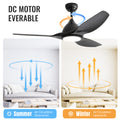 52 Inch Modern With 22W Led Light, 3 Abs Fan Blades Dc Motor Black For Bedroom Living Room Black Abs