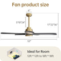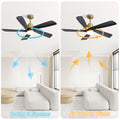 52 Inch Modern With Dimmable Led Light 5 Solid Wood Blades Smart Remote Control Reversible Dc Motor Gold Metal & Wood