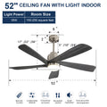 52 Inch Modern With Dimmable Led Light 5 Solid Wood Blades Remote Control Reversible Dc Motor With Smart App Control Nickel Metal & Wood