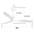 52 Inch Wooden White 3 Solid Wood Blades Remote Control Reversible Dc Motor With Led Light Matte White Metal & Wood
