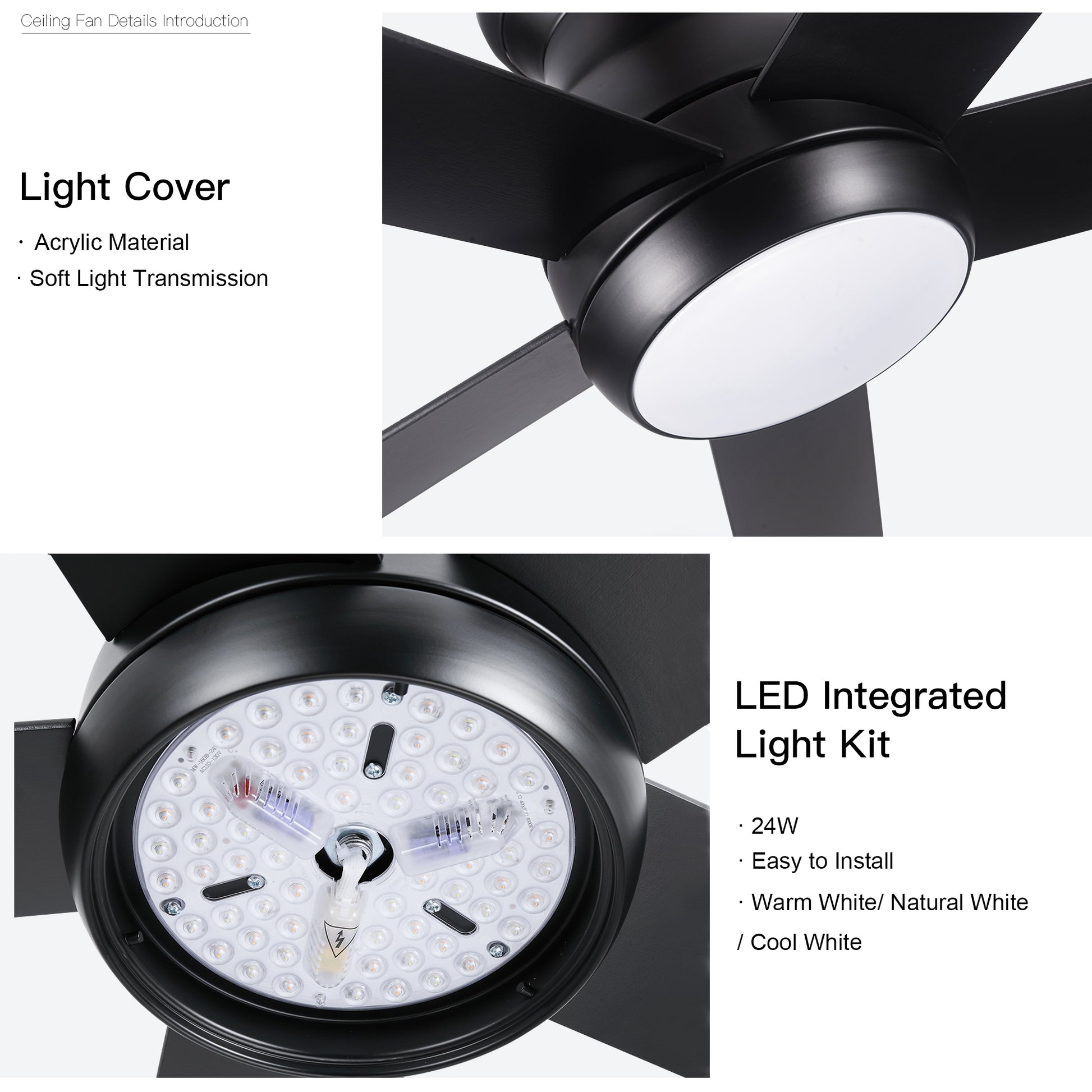 52" Low Profile Ceiling Fan With Lights Antique Black Modern Plywood Metal